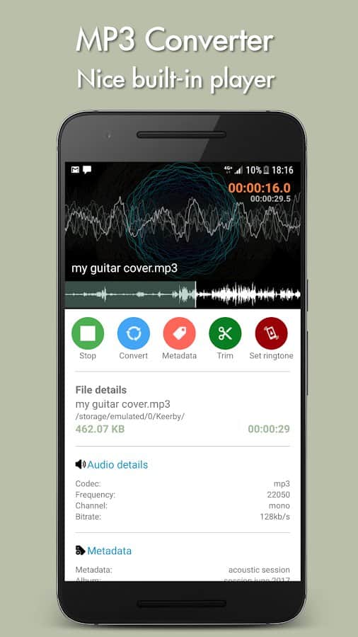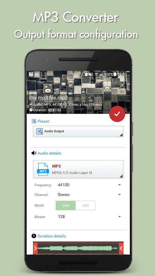 MP3 dönüştürücü, cihazınızdaki tüm müzik formatlarını dönüştürmenizi sağlar: MP3, FLAC, WMA, AAC, OGG, AC3, WAV, APE, AIFF. Nihai format ayarlarını (frekans, bit hızı, kanal, zaman aralığı seçimi vb.) yönetebilir ve bunları programda kaydedebilirsiniz. Arka planda dönüştürme çok fazla zaman almaz ve anlık bir süreçtir. MP3 dosyalarının ses seviyesini ayarlayın, etiketleri ve meta verileri istediğiniz gibi değiştirin. Grup modunda, içindeki dosyalarla birlikte bir klasörü tamamen dönüştürebilirsiniz. Programın arayüzü basit ve her kullanıcı için sezgisel olarak anlaşılır.