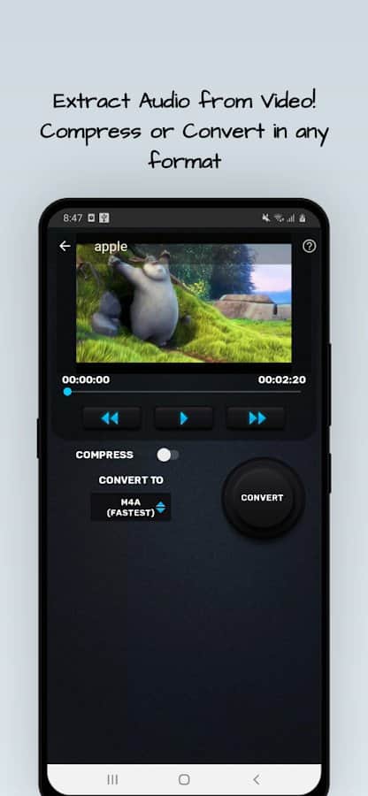 MP3 WAV AAC M4A Ses Dönüştürücü - istediğiniz gibi seçtiğiniz ses veya video dosyasını düzenlemek için çok zaman harcamanıza gerek yok. Belirli anları kesin, sesi sıkıştırın, videoyu veya sesi hızlandırın, videoyu bazı noktalarda kesin, videoyu sese, sesi videoya dönüştürün. Uygulama çok sayıda formatı destekler: MP3, WAV, AAC, AC3, OGG, M4A, FLAC, MKV, AVI, 3GP, WMV, M4V, FLV, MPEG, MPG, MOV, VOB, WEBM. Gerekli işlemleri bulmak için kendi zamanınızı harcamaktan kaçının, çalışmaya başlamadan önce tüm özellikleri öğrenin.