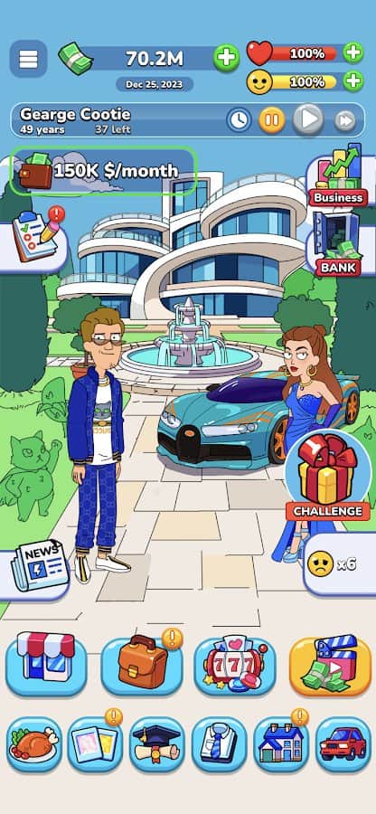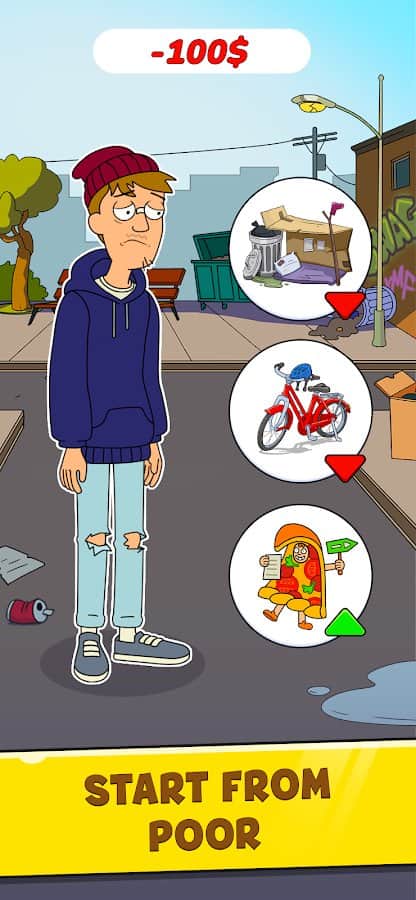 Mr.Billion: İş Simülatörü - zenginlik ve başarı hayalinizi gerçekleştirmenizi sağlayan bir oyundur. Bu gerçek yaşam simülatöründe, bir evsizin sıfırdan başlayarak zenginleşme yolculuğunuza çıkabilirsiniz. Oyunun temel fikri, işsiz bir gencin finansal çukurdan kurtulmasına yardımcı olmaktır. Başarıya ulaşmak için üniversiteyi bitirmeniz ve yeni beceriler ve bilgiler edinerek gelişmeniz gerekecek. Yönetim veya hukuk gibi eğitim kursunuzu seçebilirsiniz. Sürekli olarak kendinizi geliştirmek ve başarıya ulaşmak önemlidir.