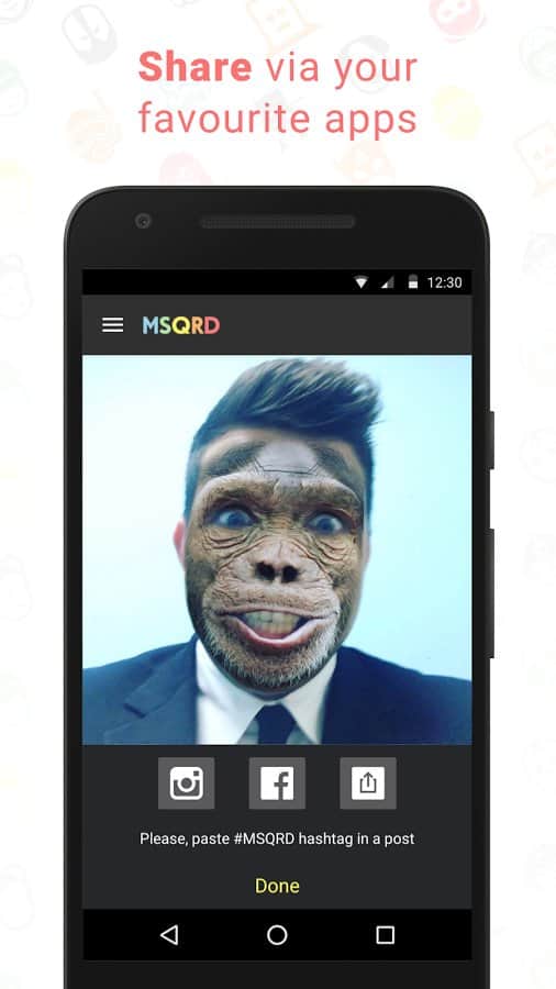 MSQRD – arkadaşlarınızı korkutmak mı yoksa sadece şaşırtmak mı istiyorsunuz? Onlara üzerine maske eklenmiş bir selfie fotoğrafınızı gönderin. Uygulama şu an test aşamasında ve çok fazla farklı efekt sunmuyor. Ancak geliştirici, yakın zamanda birçok yenilik ekleyeceğini vaat ediyor. Uygulama oldukça basit; kamerayı kendinize tutuyorsunuz, bir maske seçiyorsunuz ve o, maske yüzünüzün üzerine ekleniyor. Oldukça kaliteli ve eğlenceli bir şekilde yapılmış. Ayrıca, uygulamada sosyal medya desteği de mevcut, böylece fotoğrafınızı arkadaşlarınızdan birine kolayca gönderebilir veya sadece sayfanızda yayınlayabilirsiniz.