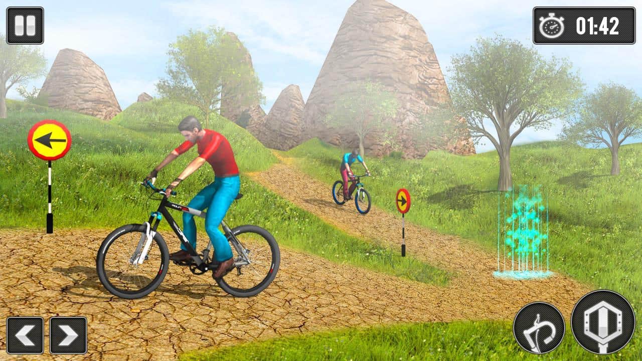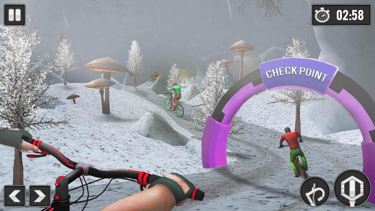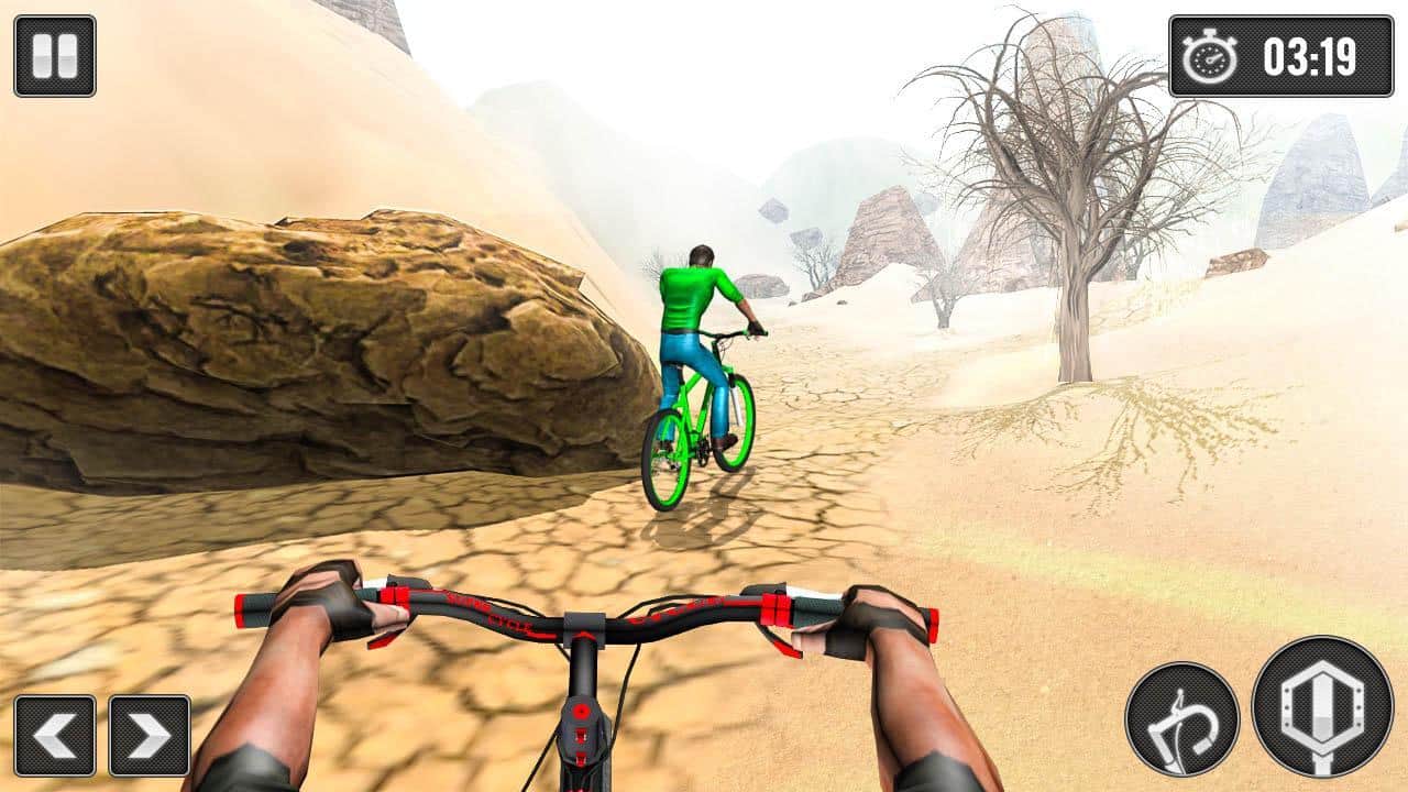 MTB Dağ İnişi Bisiklet Yarışı – birinci şahıs bakış açısıyla gerçekçi bisiklet yarışları. Bu oyunda bir dağ bisikletini kontrol altına alacak ve çeşitli dağ yolları ve geçitlerden geçeceksiniz. Mümkün olduğunca hızlı gitmeye çalışın ve yolunuzdaki tüm engelleri aşın. Bisiklet sürme yeteneklerinizi sergileyin ve sürekli olarak ilerideki yön levhalarını takip edin. Kontrol noktalarını geçin ve ödüller ve bonuslar kazanarak ilk olarak finişe ulaşın. Yeni bisikletlerin kilidini açın ve yeni seviyeleri keşfedin.