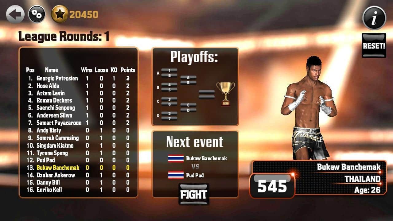Muay Thai - Dövüş Kökenleri – bu Android oyununda profesyonel Tayland boksu dünyasıyla tanışın. Çok sayıda katılımcı arasından bir dövüşçü seçin ve onu ringe çıkararak en güçlü rakiplere meydan okuyun. Bu oyundaki her dövüşçü, dövüş yetenekleri ve teknikleri ile benzersizdir. Dövüşçünüzü eğiterek onu daha güçlü ve dayanıklı hale getirin. Rakibinize karşı savaşa girin ve ona güçlü yumruklar ve tekmeler atarken, savunmanızı yapmayı ve karşı saldırılardan kaçmayı unutmayın. Bu oyunda dövüşçünüzü tamamen kontrol altına alacak ve dövüş taktiğinizi kendiniz planlayacaksınız. Farklı oyun modlarında yeteneklerinizi deneyin.