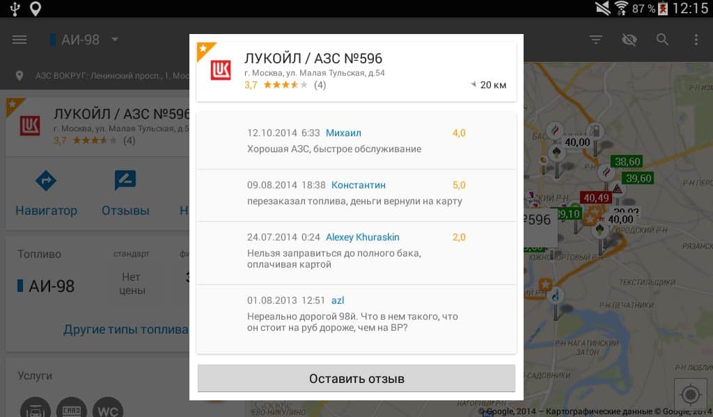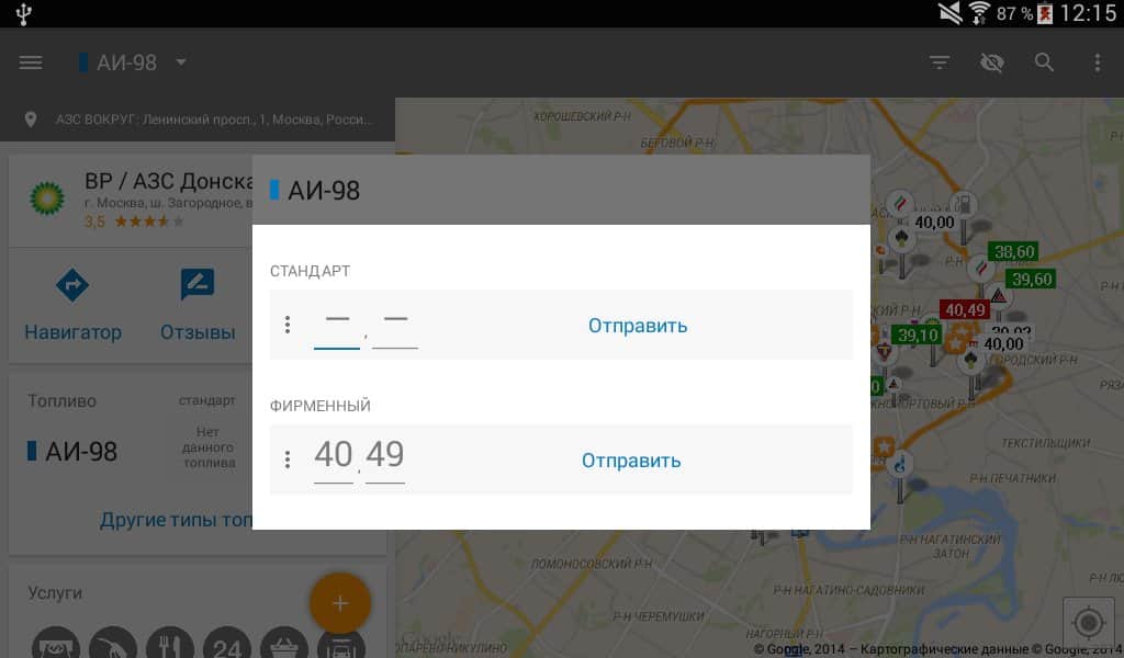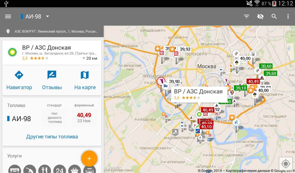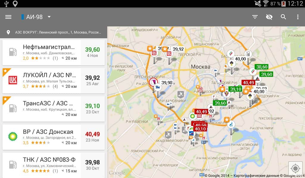 - Uygulama, herhangi bir adrese göre akaryakıt istasyonlarını aramanıza olanak tanır. Artık herhangi bir şehirde benzin fiyatları aralığında kolayca yön bulabilir veya tanımadığınız bir yerde deposu boşalan bir arkadaşınıza yardım edebilirsiniz.