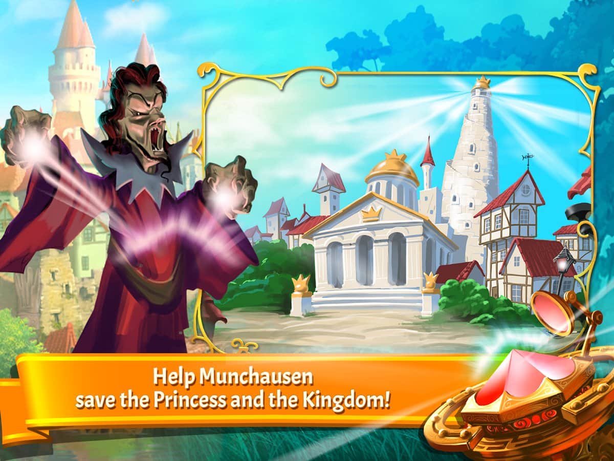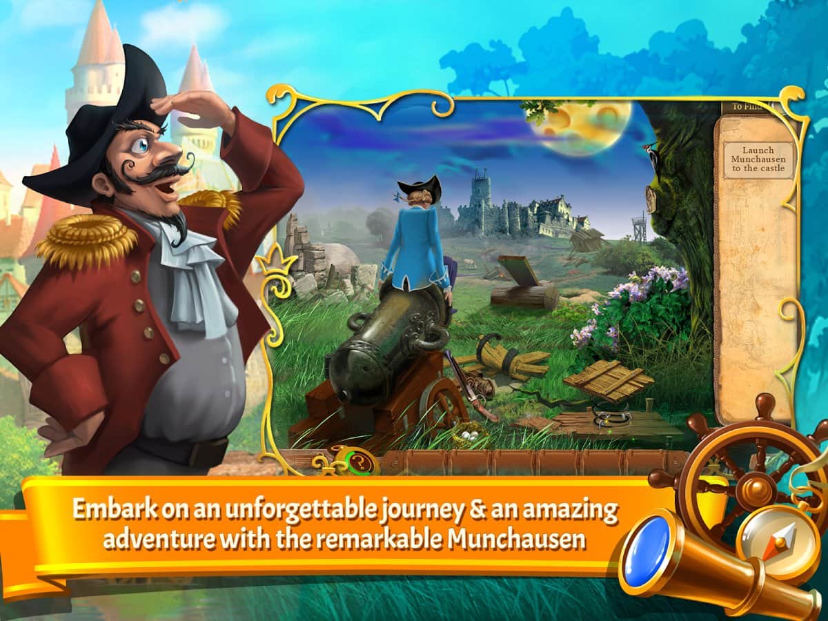 Munchausen HD - hikayesi masalsı bir krallıkta geçen bir bulmaca oyunudur ve ana karakter olarak ünlü edebi karakter Baron Münchhausen yer alır. Öyle ki, ana kötü karakterin haince ve alçakça bir eylemi sonucunda insanlara refah ve sevinç getiren sihirli kristal yok edilmiştir. O zamandan beri krallık karanlığa gömüldü ve ülke halkı hastalıklar ve kıtlıklarla başa çıkmak zorunda kaldı. Ama bir gün, kalenin kapısında bir adam belirir ve krala prensesin elini almak için bir sandık altın teklif eder. Sorunlardan bıkan kral kabul eder, ancak prensesin bu konuda kendi fikirleri vardır. Ve o, istemediği nişanı önlemek için Münchhausen'e yardım etmesini isteyen bir mektup yazar. Bu andan itibaren oyuna dahil oluyorsunuz, sizi bu heyecan verici bulmaca oyununda birçok macera bekliyor. Oyun, klasik bulmaca unsurlarını, mini oyunları, bilmeceleri ve nesne bulmayı bir araya getiriyor.