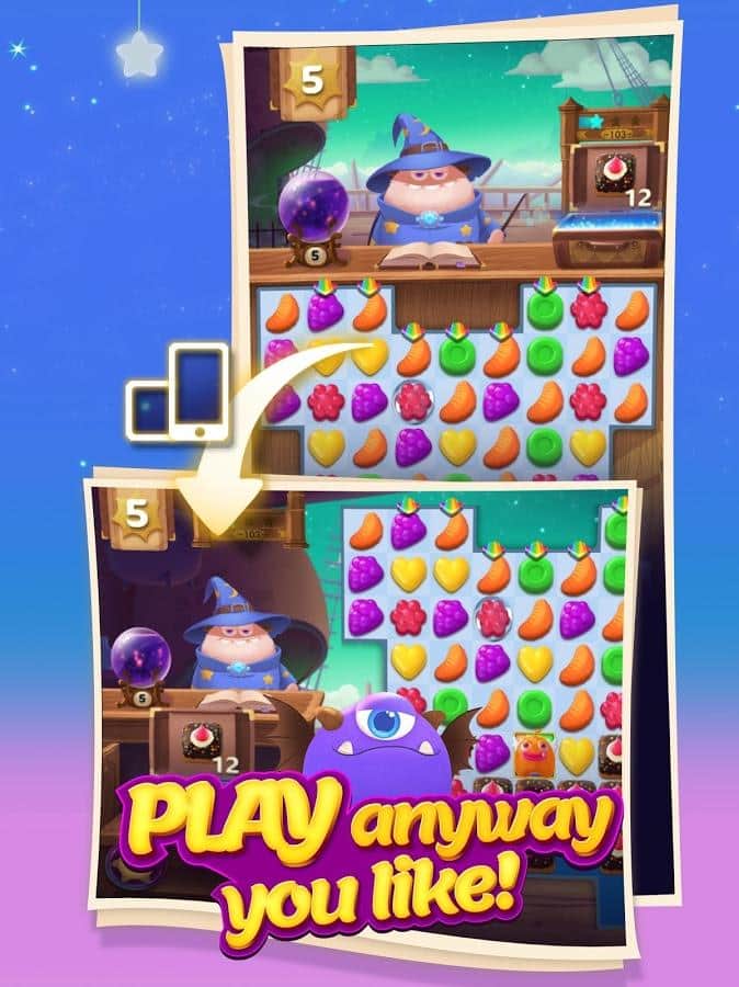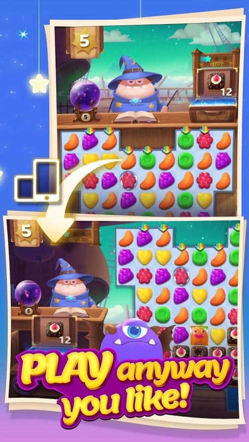 Munchkin Match - Android için bir üçlü eşleştirme oyunudur; burada sihirbaza şeker sıraları oluşturmasına yardım edeceksiniz. Bu oyundaki ana göreviniz meyveler, şekerler ve tatlılardan oluşan sıralar oluşturmaktır. Masalsı dünyada seyahat edin ve tüm mantıksal ve sihirli yeteneklerinizi kullanın. Şekerlerden olabildiğince uzun sıralar oluşturun ve onları patlatarak diğer nesneler için yer açın. Sayısız bonus ve güçlendirmeleri kullanın ve oyunun zorlu seviyelerini mümkün olan en hızlı şekilde geçin. Liderlik tablosunda daha yükseklere çıkın ve en iyi sonuçlar için arkadaşlarınızla yarışın.
