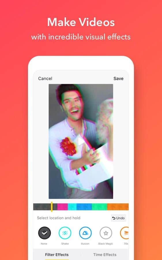 Bu uygulama ile kolayca güzel ve sıradışı efektlerle küçük bir klip oluşturabilir ve hemen sosyal medyada arkadaşlarınızla paylaşabilirsiniz! Uygulamada, çıkartmalar eklemenizi, çeşitli efektler uygulamanızı ve videonuzu benzersiz hale getirmenizi sağlayan kullanışlı bir editör bulunuyor!