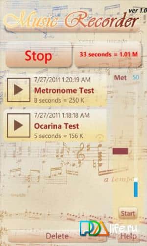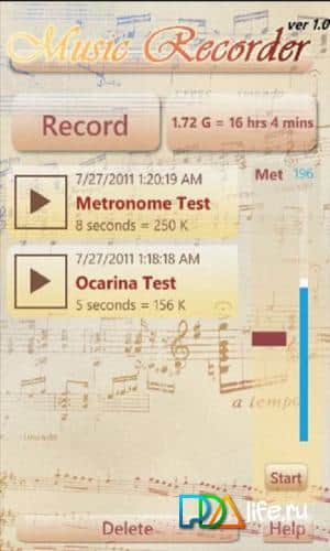 Windows Phone 7.0 için MusicRecoder. Uygulamayı telefonunuza indirin ve istediğiniz müziği kaydedin, ayrıca sesli notlar oluşturun ve mümkün olan her şeyi yapın.