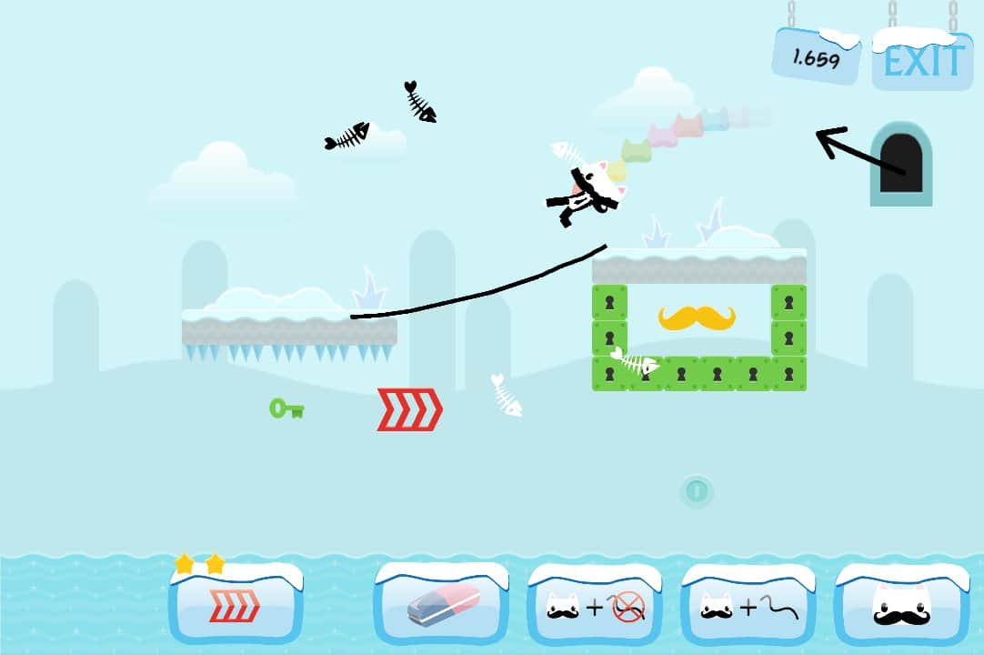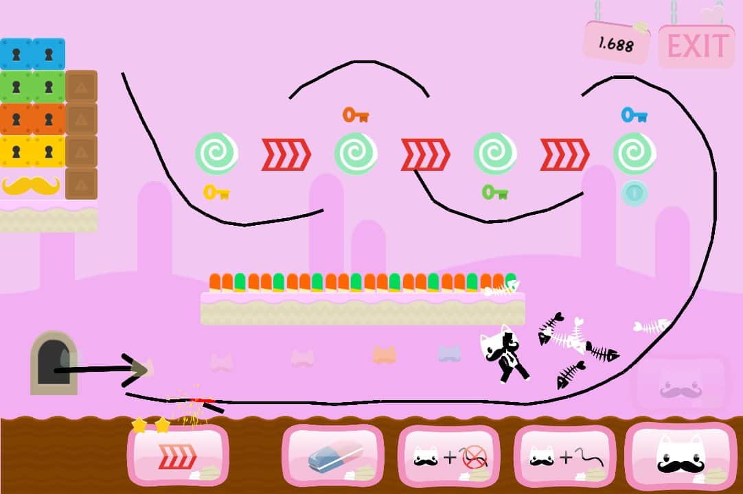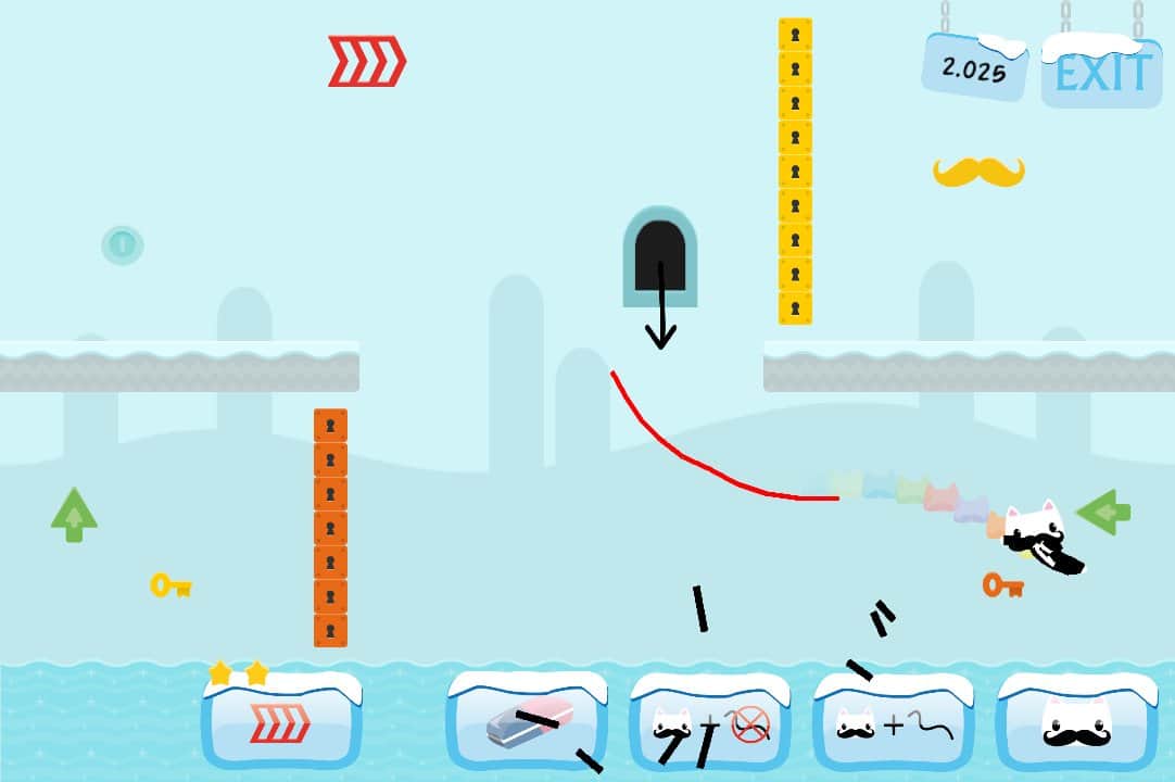Bıyık Kaydırıcı - Android'de bir oyun, burada düşen bir kediyi kontrol etmeniz gerekiyor. Kedinin düşüş yolu boyunca tüm bonusları toplaması ve sarı bıyıklara ulaşması için bir düşüş hattı çizin. Üç farklı dünyada toplam 40 heyecan verici seviyeyi geçin ve kediniz için ek ilginç özellikleri açmaya çalışın. Kendiniz ve arkadaşlarınızla oynayın ve harika fiziğin ve canlı grafiğin tadını çıkarın.