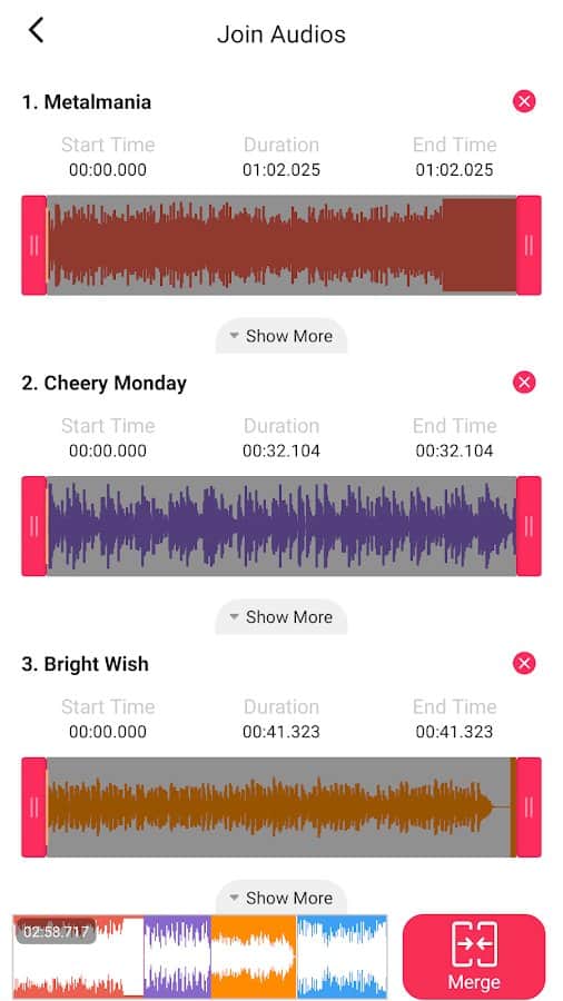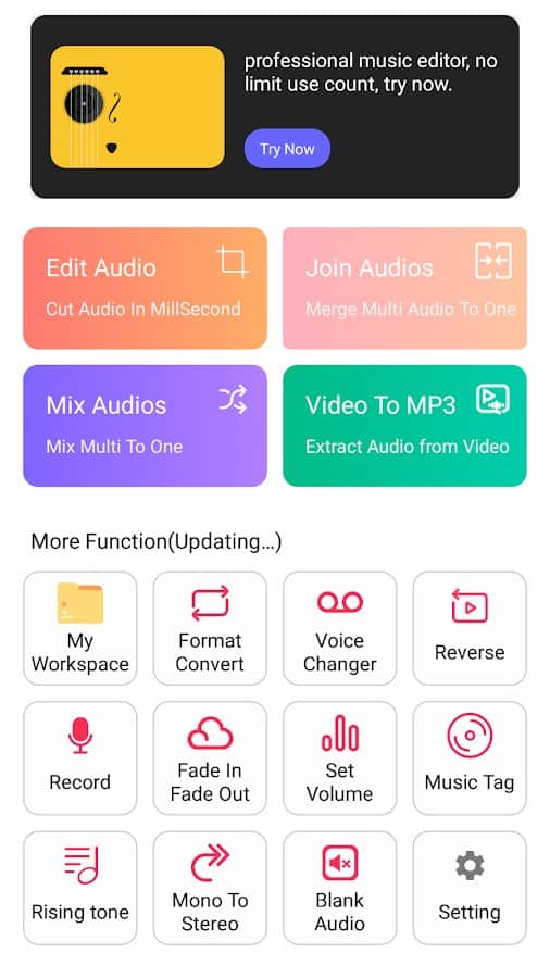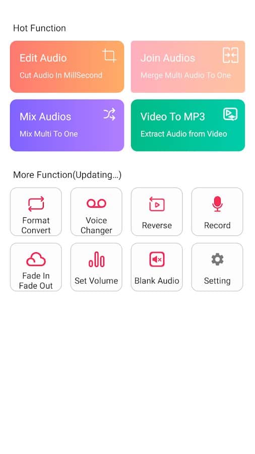Müzik editörü - Bu müzik editörünün kullanışlı işlevleri sayesinde herhangi bir kullanıcı şarkıdan veya ses kaydından gerekli parça kesip alabilir ve diğer her şeyi silebilir. Uygulama yalnızca en gerekli ve profesyonel işlemleri destekler; örneğin, birden fazla ses parçasını birleştirme, ses seviyesini değiştirme, sesi video formatına dönüştürme, ters oynatma, ileri veya geri hızlı sarma, sesi tamamen kapatma ve ses parçasının başına ve sonuna efektler ekleme.