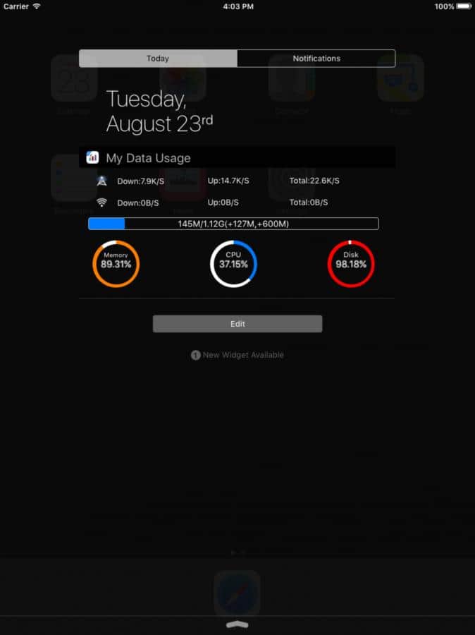 Cihazınızdaki tüm önemli bilgilere her zaman ulaşmak pratik. My Data Usage Widget, 3G ve Wi-Fi ağlarındaki veri yükleme ve aktarım hızını, serbest RAM ve depolama alanı miktarını, ve gerçek zamanlı işlemci yükünü bildirim merkezine taşır. Bu bilgilere dayanarak, akıllı telefonunuzdaki olası sorunları daha doğru bir şekilde teşhis edebilir veya sadece yükleme ve performansını takip edebilirsiniz. Veri trafiği için belirli sınırlar koyabilir ve bu sınırları aştığınızda ilgili bildirim alabilirsiniz. Eğer bu verilere ilginiz yoksa, görüntülenmelerini ayarlardan kapatabilirsiniz.