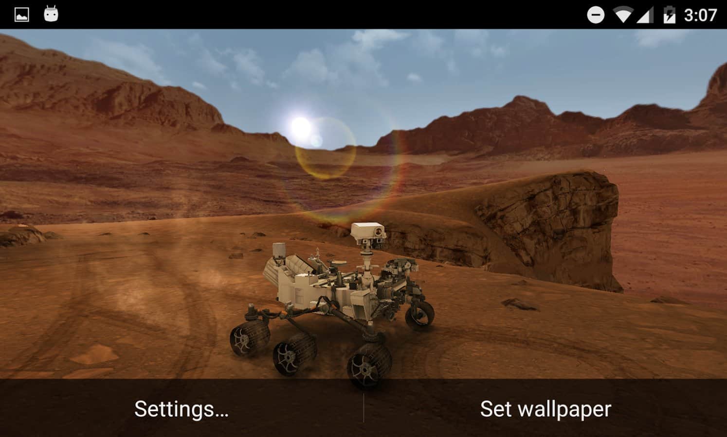 Benim Marsım – sizi inanılmaz Mars manzaralarıyla mutlu edecek harika canlı duvar kağıtları. Bu canlı duvar kağıtlarını telefonunuza veya tabletinize kurarak Mars Rover'ın Mars yüzeyinde hareketini izleyebilirsiniz. Bu duvar kağıtları, keşfedilmemiş gezegenden gerçekçi sahneler, mavi gün batımları, turuncu gökyüzü ve çok sayıda parlayan yıldız ve gezegenle güzel geceler sunacak. Ekrana dokunarak Mars Rover'ınızı etkinleştirin ve kayalık yüzeyde nasıl hareket ettiğini izleyin; ayrıca onu her açıdan detaylı bir şekilde inceleyebilirsiniz. Mars'ı fethetmenize gerek yok, o zaten ellerinizin altında.