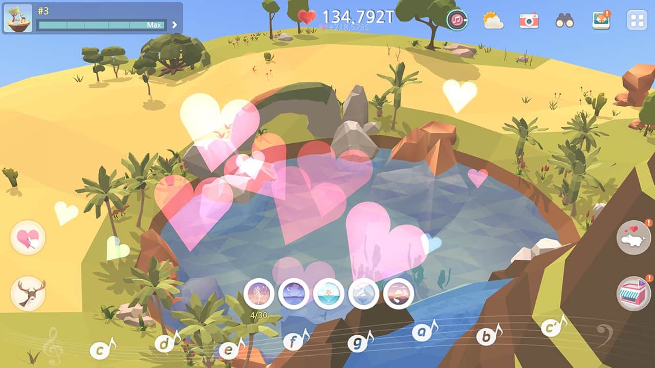 Benim Oazim - Gökyüzü Adası'na Dokun – Android için bir müzik tıklayıcı, burada eşsiz adanızı yaratacaksınız. Bu müzik oyununda amacınız, telefonunuzun veya tabletinizin ekranına dokunarak kalpler kazanmak ve bunları adanız için eşyalar satın almak için harcamaktır. Oyun ilerledikçe, araziyi değiştirebilir ve ağaçlar ve hayvanlar gibi yeni unsurlar ekleyebilirsiniz. Bu oyunda müzik notalarını seçebilir ve adanızın iklimini değiştirebilir, sabah veya gece yapabilirsiniz. Hayvanlara veya bitkilere dokunarak çeşitli nesnelerle etkileşime geçin ve değerli ödüller kazanın. Oyunda toplamda 250'den fazla seviye bulunmaktadır, hepsini geçin ve inanılmaz oazinizi oluşturun.