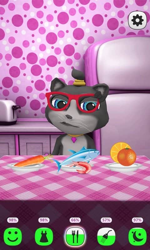 Benim Konuşan Kediğim – çocuklar için mükemmel bir oyun olan bir Android oyunudur. Bu oyunu telefonunuza veya tabletinize yüklediğinizde, sizinle oynayacak, konuşmalarınızı kendi benzersiz tatlı sesiyle tekrarlayacak ve hareketleriyle sizi güldürecek sevimli bir kedi yavrusu elde edeceksiniz. Bu oyun, çocuğunuza bir evcil hayvan edinme fırsatı sunacak. Kediciğinize zamanında bakın, onu besleyin ve sulayın, ayrıca onunla çeşitli oyunlar oynayıp uzun bir günün ardından yıkamayı unutmayın. Bu oyun ayrıca çocuğunuzun kedisiyle mini oyunlar oynama ve onu farklı kostümlerle giydirme fırsatına sahip olmasını sağlayacak. Evcil hayvanınız için en iyi gün kıyafetini seçin ve onu arkadaşlarınıza gösterin.