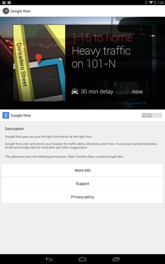 MyGlass – Google Inc.'in en iyi geliştiricisinden Android için bir program, yalnızca yönetmekle kalmayıp, aynı zamanda yenilikçi Google Glass gözlüklerini de ayarlamanıza olanak tanır. MyGlass programı, gözlüklerinizin durumu, konumu ve batarya durumu hakkında bilgi gösterecektir. Ayrıca program, video ve fotoğraf dosyalarını görüntülemenize de olanak tanır.
