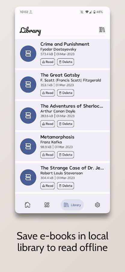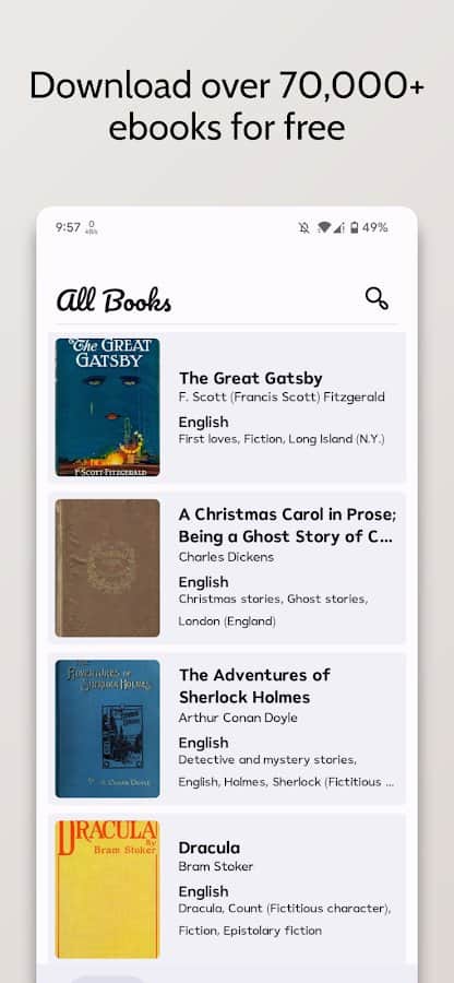 Myne, kullanıcıların Gutenberg Projesi Kütüphanesi'nden 70000'den fazla kitabı okumalarına ve indirmelerine olanak tanıyan açık kaynaklı bir android uygulamasıdır. Kütüphane, telif hakkı süresi dolmuş kamu malı olan kitapları içermektedir. Uygulamanın arayüzü, Google'ın malzeme tasarımı konseptine uygun olarak tasarlanmış, böylece kullanıcılar için basit ve anlaşılır hale getirilmiştir. Bu uygulama ile sürekli güncellenen ve eklenen farklı dillerdeki kitapları görüntüleyebilir ve indirebilirsiniz. Ayrıca, Myne, e-kitaplar için yerleşik bir okuyucu sunar ve üçüncü taraf okuyucularla uyumludur. Android 12 ve üzeri cihazlar için Material You tasarımını destekler ve açık ile koyu tema seçenekleri mevcuttur.