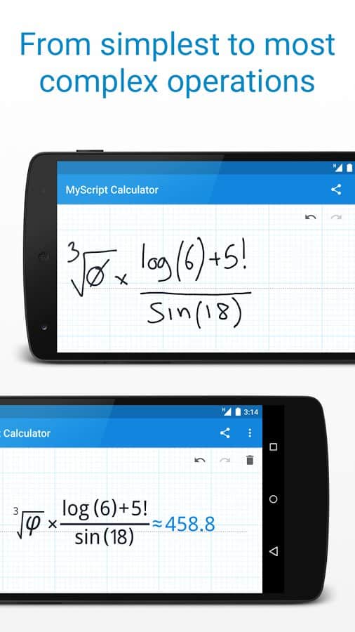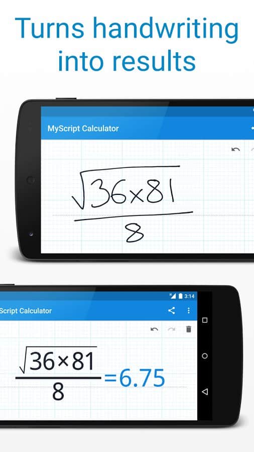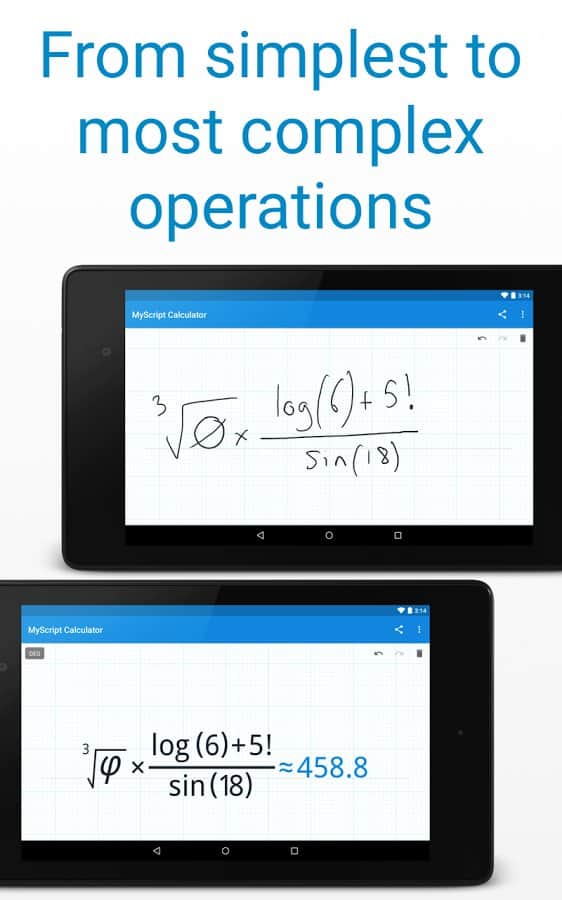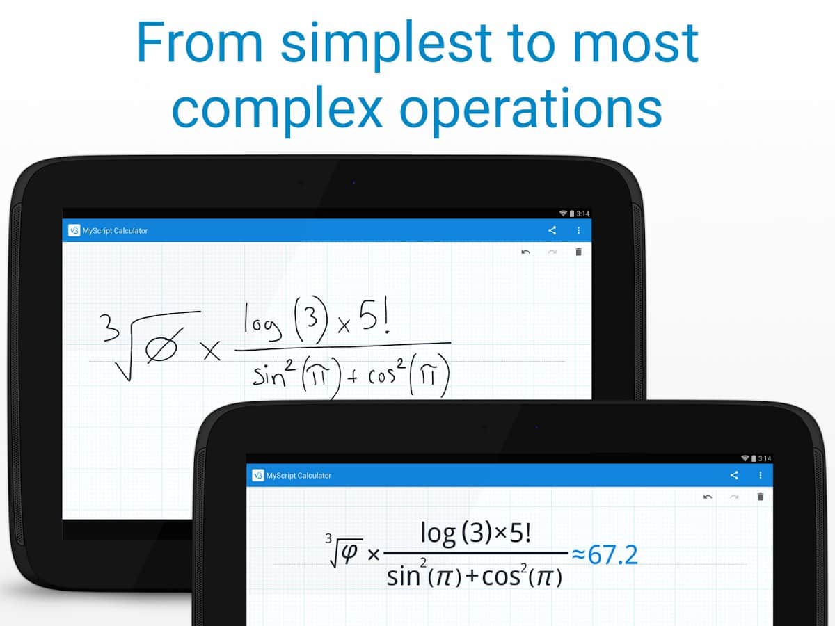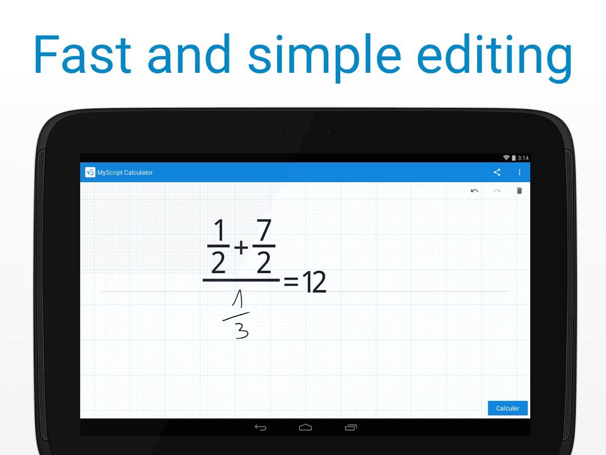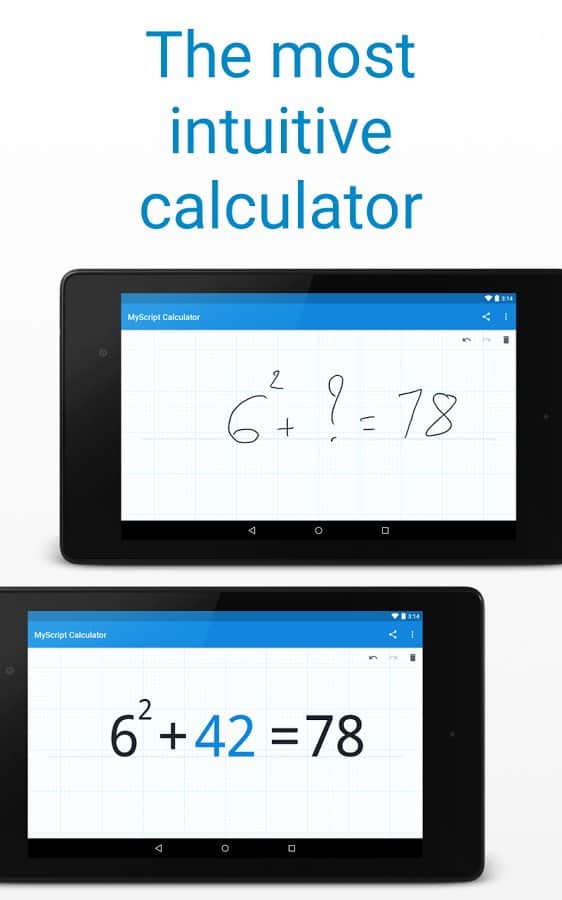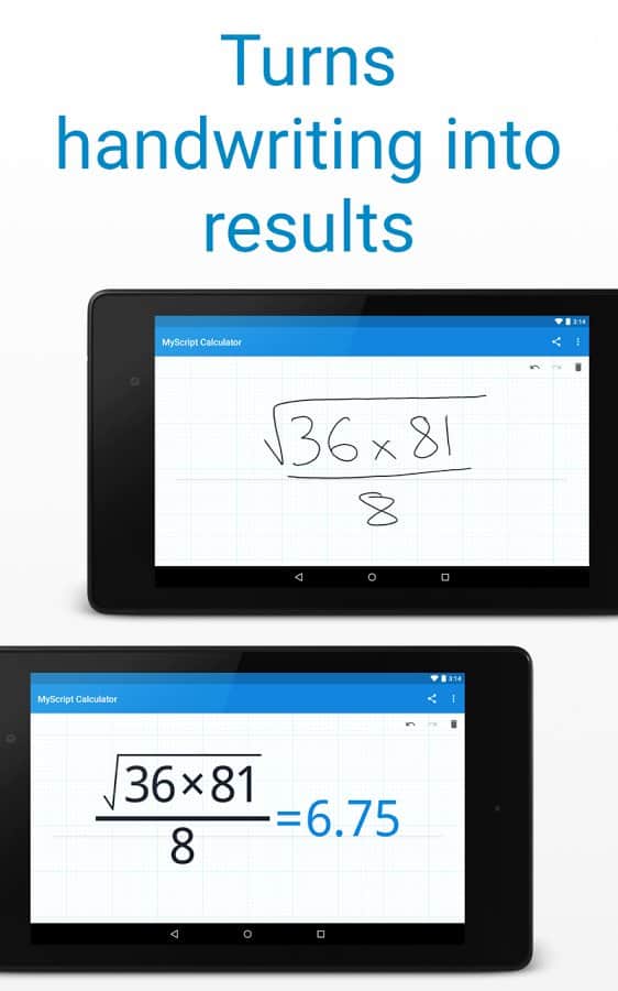 MyScript Hesap Makinesi - Vision Objects şirketinin Android için geliştirdiği hesap makinesi. Bu şirket, el yazısı tanıma programlarıyla tanınmaktadır. Bu güçlü hesap makinesi karmaşık formülleri hesaplayabilir ve formülü girmek için sadece parmağınızla veya özel bir kalemle ekrana yazmanız yeterlidir!