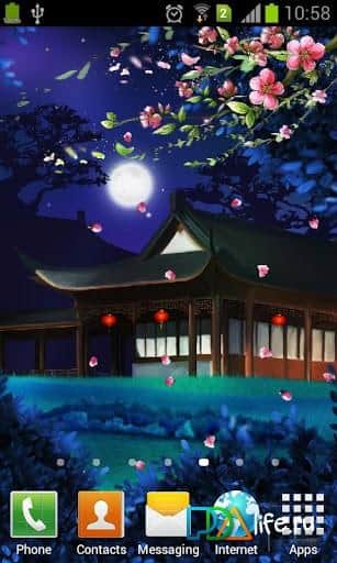 Mistık Sakura Canlı Duvar Kağıdı – bahar temasını devam ettirerek, dolunay gecesinde pagoda ve çiçek açan sakura ile Android cihazlar için mistik canlı duvar kağıtlarını sunuyoruz. Sakin bir gece, parlak bir ay ve düşen narin çiçek yaprakları.