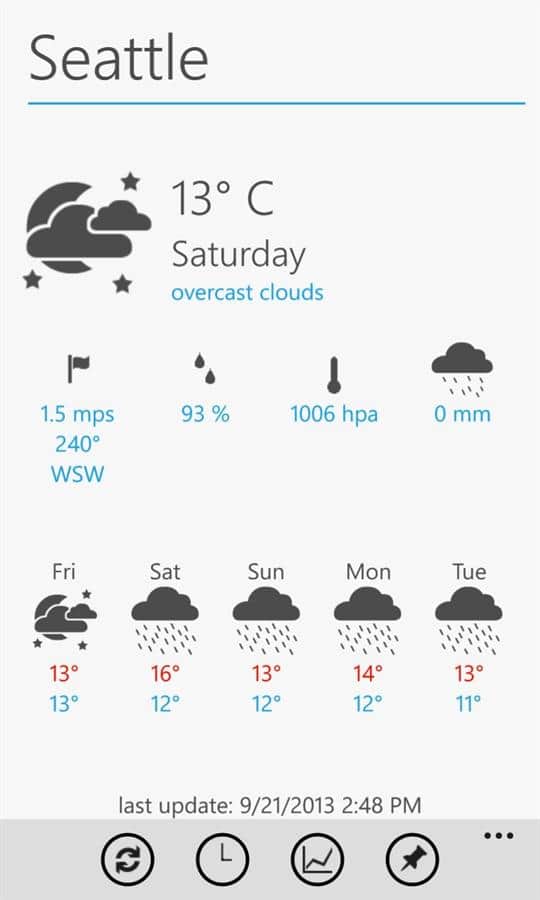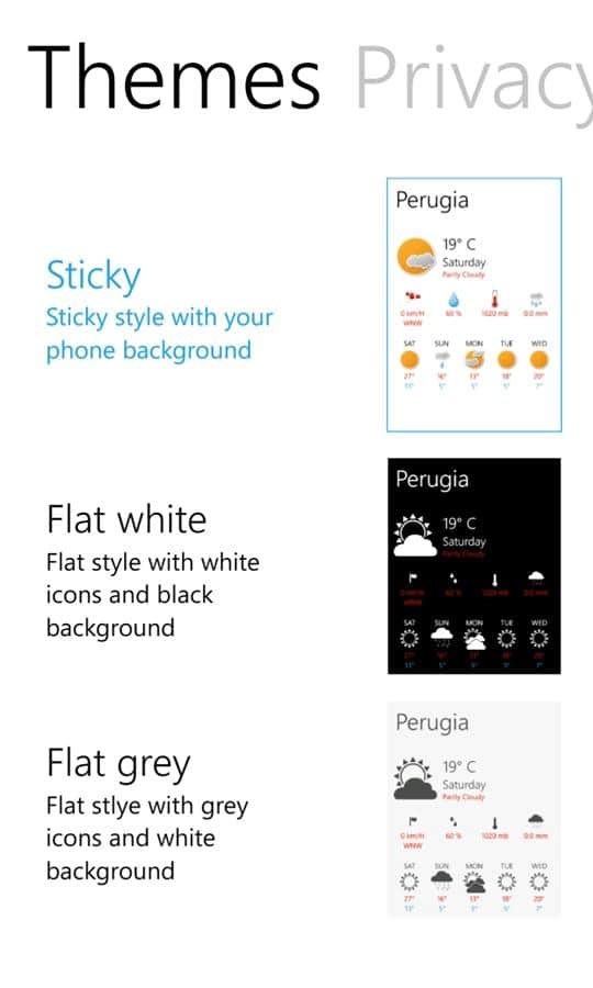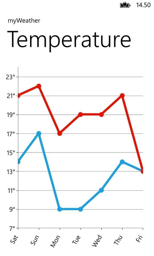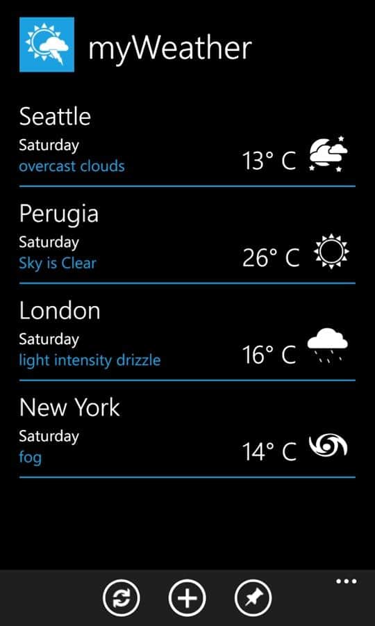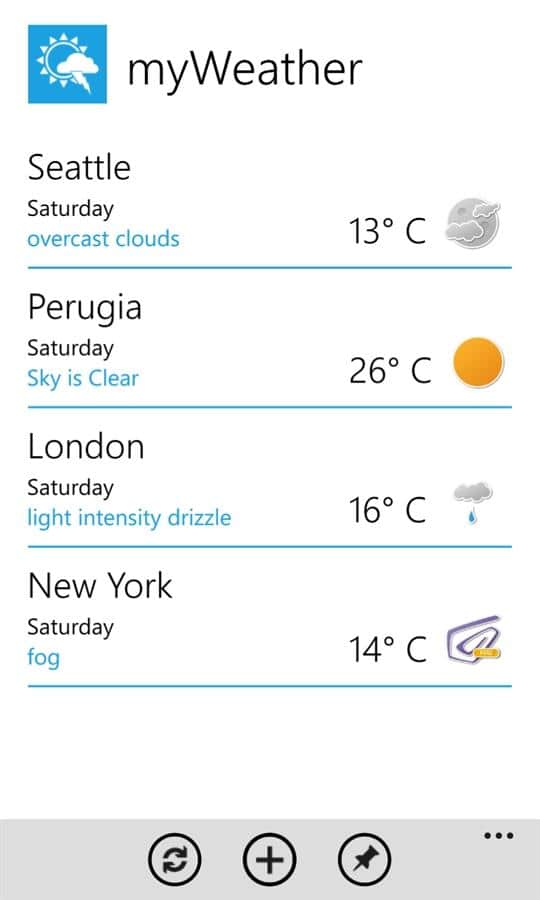 myWeather - Windows Phone için hava durumunu belirlemek için çok basit ve hızlı bir uygulamadır. Bu kullanışlı ve hafif uygulama ile hava durumu tahminlerinden her zaman haberdar olun, evde ve seyahatlerinizde mutlaka işinize yarayacaktır.