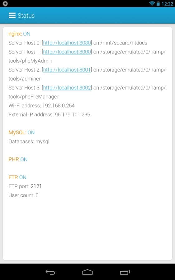 NAMP - sanal ana bilgisayar desteği ile Android tabanlı bir web sunucusudur.