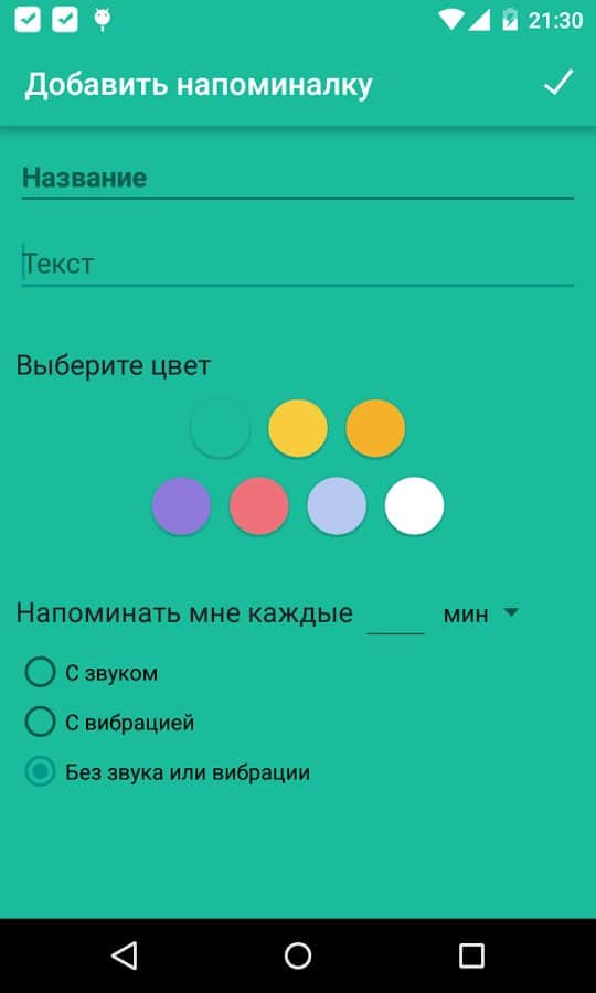 Bu uygulamanın tek bir işlevi var - sahibine önemli olaylar hakkında hatırlatmak ve sadeliğiyle dikkat çekiyor. Hızla kısa ama bilgilendirici bir not oluşturabilirsiniz, bu not sürekli olarak kilit ekranında veya durum çubuğunda bulunacaktır. Ayarlarda yalnızca en gerekli olanları bulacaksınız: hatırlatıcı ekleme, düzenleme ve silme (bunları yalnızca kilit ekranında onay kutusuna basarak da silebilirsiniz), periyodik olarak uygulama kendini sesle veya titreşimle hatırlatacaktır, gerekirse. Ayrıca, tüm hatırlatmalarınız renkli bir gösterim ile kategorilere ayrılabilecektir.