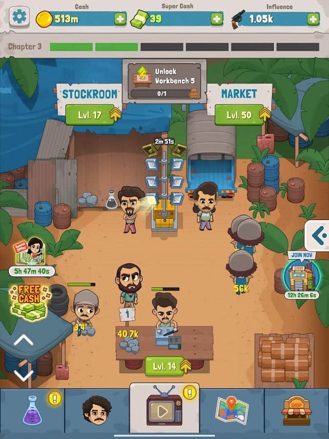 Narcos: Tembel Kartel - Netflix'in ünlü dizisi evreninde geçen bir tıklama oyunu. Pablo Escobar'ın bir uyuşturucu baronu haline gelmesini anlatıyor. Narcos: Tembel Kartel'de, aile işini miras alan ana karakterlerle birlikte kartellerin tehlikeli dünyasıyla tanışacaksınız. Karşınıza birçok zorluk çıkacak ve ellerinizi temiz tutmayı mı seçeceksiniz yoksa hayatta kalmak için her şeyi yapmayı mı? Sıfırdan kendi kartelinizi oluşturun ve geliştirin, aynı zamanda birbirinizle sınırlı süreli etkinliklerde rekabet ederek özel ödüller ve efsanevi El Patrón ile diğer sahte kişilerin sunduğu hizmetlerden yararlanın.