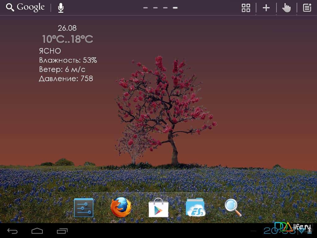 Doğa Canlı Hava Durumu LWP – Sergey Abadzhev tarafından geliştirilen Android cihazlar için hava durumu tahminini gösteren muhteşem canlı duvar kağıtları. Hava olayları, mevsim değişiklikleri (yani yaz arka planında kar yağmaz) ve gün saatlerinin çok güzel ve kaliteli bir şekilde gösterildiği, ayrıca renk ve yazı tipi seçme imkanı ve daha birçok şey bulunmaktadır.