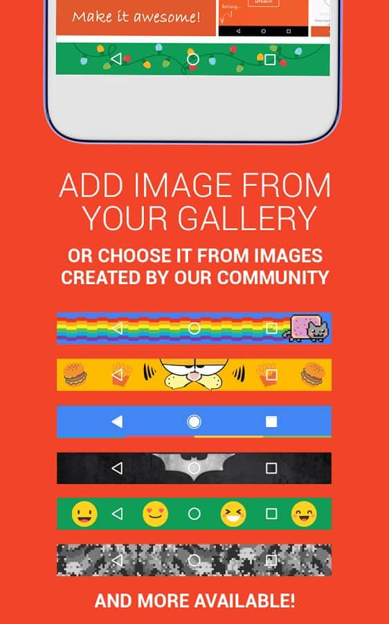 Navbar Uygulamaları - Navigasyon çubuğunuza benzersiz bir görünüm kazandırın! Birçoklarımız navigasyon çubuğunu kullanıyor, ancak bu uygulama ile ona oldukça eğlenceli ve benzersiz bir stil verebileceğini pek az kişi biliyor. Onu herhangi bir renkle doldurun veya uygulamada seçtiğiniz bir deseni ya da kütüphanenizden bir resmi üzerine yerleştirin.
