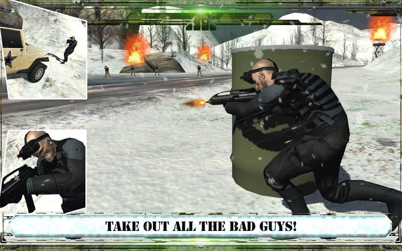 Navy Seal Keskin Nişancı Kış Savaşı – özel birim savaşçısı olun ve düşmanları yok etme görevlerini yerine getirin. Dağlarda karla kaplı arazide ilerleyin ve etkili ateş açın. Üssünüzü koruyun ve güçlü ve çeşitli silahlarla teröristleri yok edin. Sığınaklar arayın ve bir atışla düşmanları yok etmek için iyi görünen konumları işgal edin. Askeri araçları kontrol altına alın ve arazide bu araçlarla hareket edin. İyi yapılan iş için mükemmel ödüller kazanın ve yeni silah türlerinin kilidini açın.