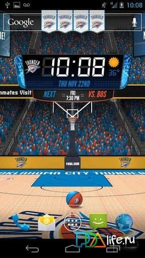 NBA 3D Canlı Duvar Kağıdı – en iyi geliştirici Cellfish Studios'dan basketbol severler için Android için canlı duvar kağıtları. Bu duvar kağıtlarını indirip akıllı telefonunuzun ekranına kurun ve boş bir dakikanız olduğunda topu potaya atın, bununla sınırlı kalmıyorsunuz. Size sunulanlar: basketbol skorbord şeklinde saat widget'ı, sahayı seçme imkanı, topun görünümü ve takım seçimi. İyi eğlenceler.