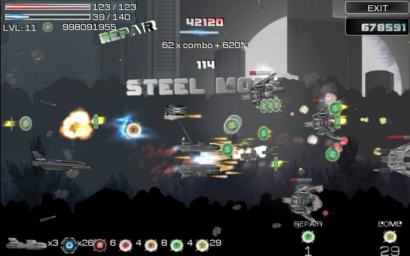 Gökyüzü Çelik - Ultimate Edition / SKY STEEL - Ultimate Edition - RPG unsurları içeren yan kaydırmalı aksiyon oyunu, galaksiyi düşmanlardan korumanız gereken bir oyun. Güçlü bosslarla ve çeşitli düşmanlarla lazer piyonlar ve bombalarla savaşın. Sizi çeşitli dünyalar ve birkaç oyun aşaması bekliyor, burada yeni bir uçağı açma veya çeşitli yükseltmelerle uçağınızı geliştirme şansınız olacak.