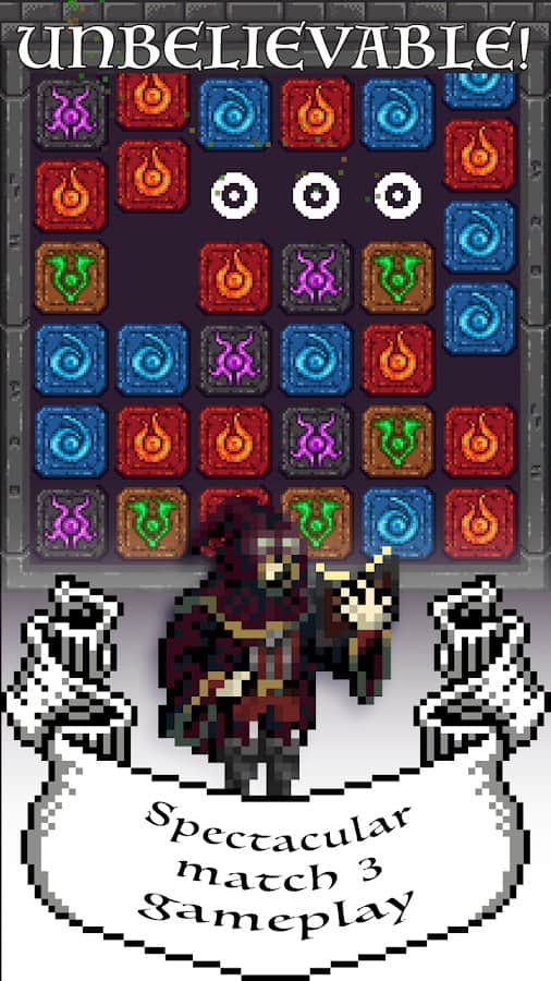 Necrox – Android için heyecan verici bir rol yapma oyunu, üçlü eşleme unsurları ile. Bu oyunda, gücünüzü ve yeteneklerinizi kullanarak düşmanınızı yenmek zorunda olduğunuz bir büyücüyü oynayacaksınız. Üç veya daha fazla nesne ile sıralar oluşturun ve böylece kahramanı sihirli güçle donatın. Düşmanlarınız size farklı hızlarda saldıracak ve size önemli hasar verecek, bu yüzden sürekli olarak başlarının üstünde gösterilen sağlık durumlarına dikkat edin. Farklı yetenekleri birleştirerek daha fazla puan ve güç kazanın, bu da sonuçlarınızı iyileştirecektir.