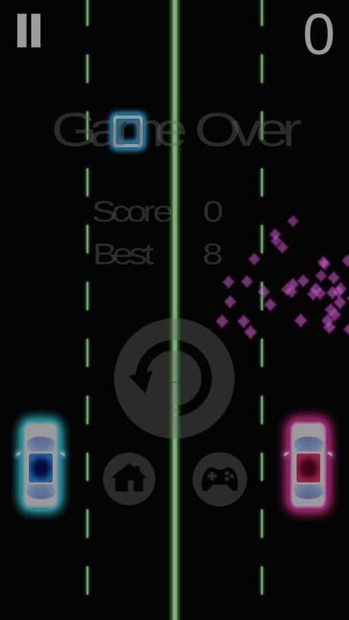 Neon 2 Arabalar Yarışı – Android'de dinamik yarışlar, burada aynı anda iki aracı kontrol edeceksiniz. Bu neon grafikli oyunda, birbirine paralel olarak giden iki aracı kontrol altına alacaksınız. Araçlarınızı ileri sürün ve engellere ve karelere çarpmamaya dikkat edin, bu arada üçgenleri ve daireleri toplamayı unutmayın. Harika sürüş becerilerinizi ve size de fayda sağlayacak iyi reflekslerinizi gösterin. Hangi araçla kontrol sağlamak istiyorsanız telefonunuzun veya tabletinizin ekranına o taraftan dokunun ve çarpışmalardan kaçının. Bu oyunda rekor sonuçlara ulaşın ve liderlik tablosunun en üstüne çıkın.