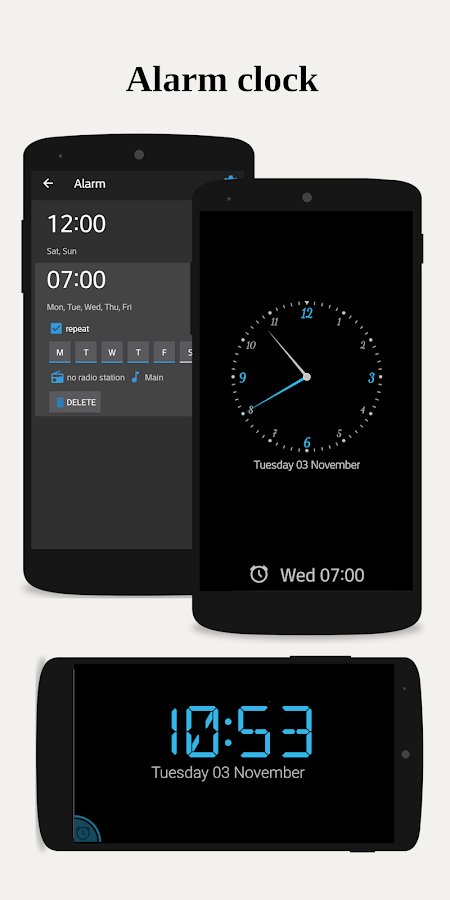 Gece saati - ekran parlaklığını otomatik olarak günün saatine göre ayarlayan masaüstü saat. Gündüz ekran parlak kalırken, gece kararıp uyku düzeninize müdahale etmez. Basit kontrol sayesinde iki parmakla yakınlaştırma hareketiyle yazı boyutunu kolayca değiştirebilirsiniz.