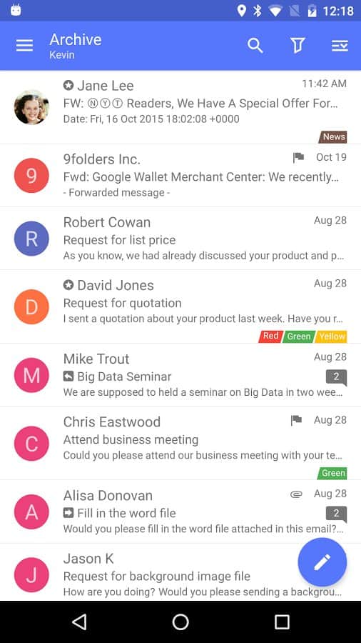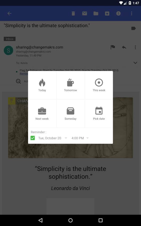 Yorumlar ile Nine is Outlook for Android üzerinde Android