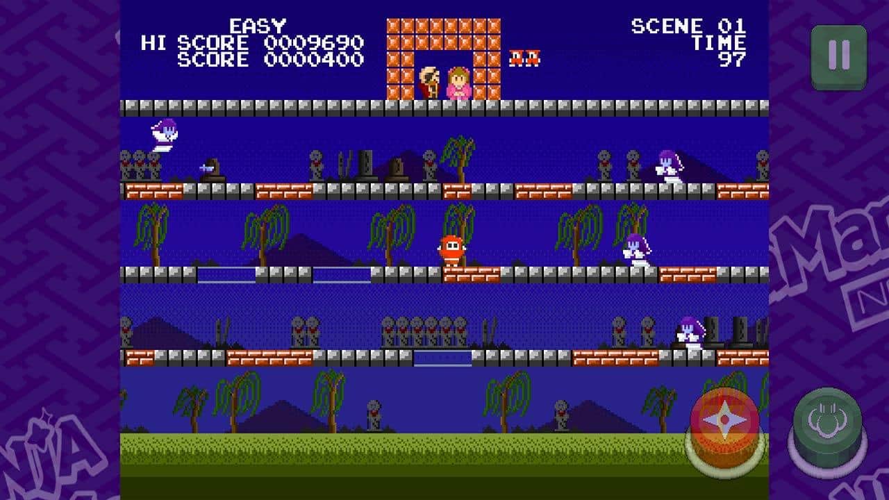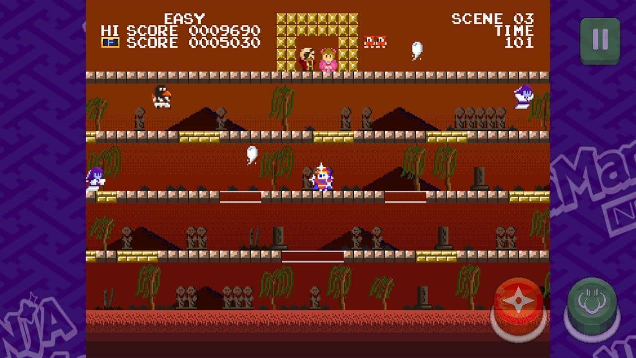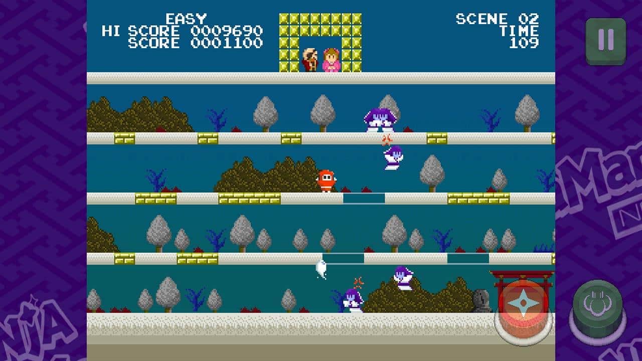 Ninja JaJaMaru neo klasik - Prenses Sakura'yı kötü Namazu Dayu'nun elinden kurtarın. Ana karakterle birlikte düşmanlarla ve zorlu yolla başa çıkmalısınız, ana boss'a ulaşmadan önce. Zorlukları eğlenceli bir maceraya dönüştürün - zıplayın, koşun, ateş edin ve platform katmanları arasında hareket etmek için doğru anları seçin. Ekstra nesneleri (kurbağa, kamyon, kırmızı boncuk..) etkili bir şekilde kullanın ve ninjalarla dolu 50 aşamayı tamamen geçin. Deneyim kazanın, zaman rekorlarını kırın ve her yeri keşfedin.