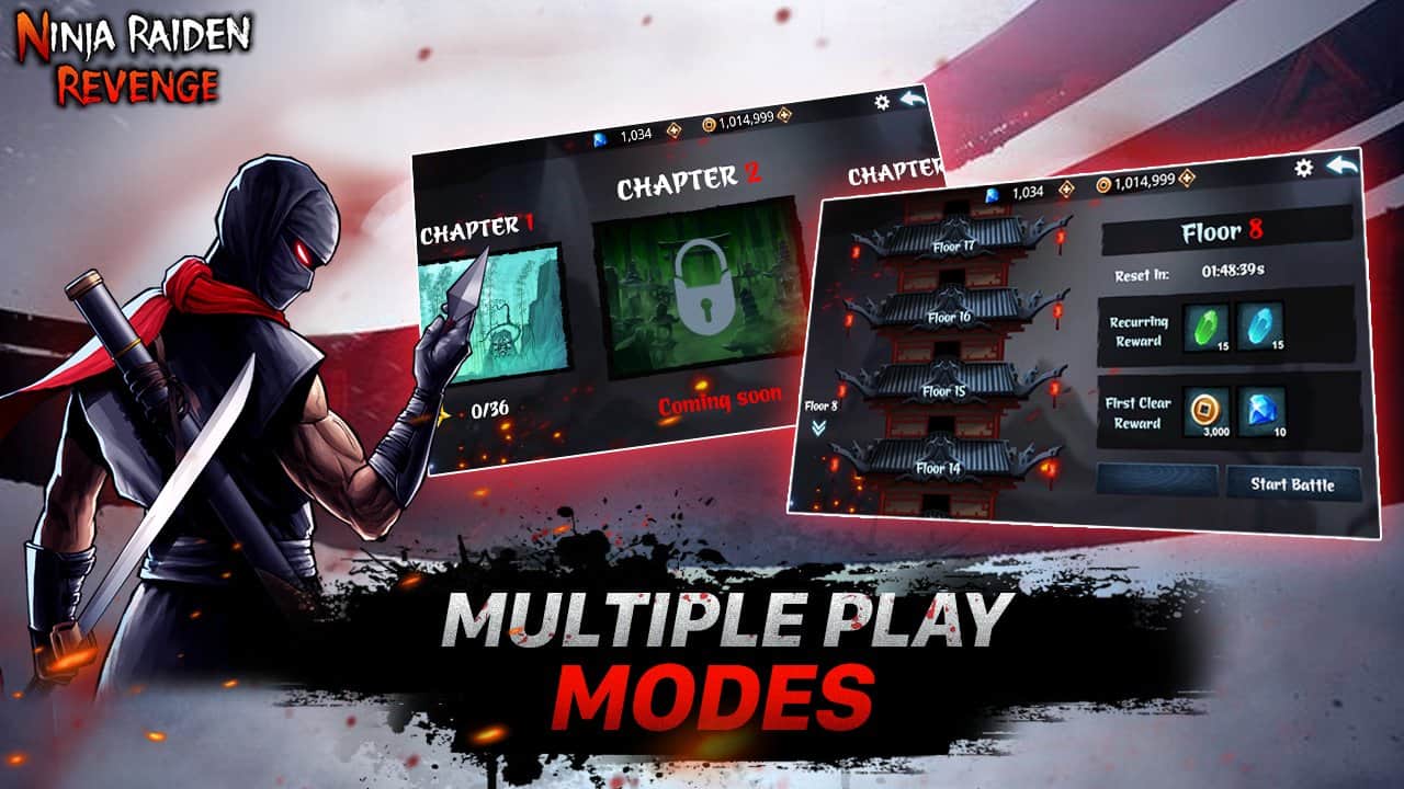 Ninja Raiden İntikam – oyunun hikayesi, sekiz başlı bir yılan ve sürekli kanlı bir beden olarak tanımlanan dev iblis Orochi'nin, sekiz vadiyi kaplayarak dünyayı yok etmek için yeniden doğmasıyla başlar. Her yüz yılda bir bu iblis, tüm dünyayı yenmek için geri döner, ancak onun yoluna rüzgar köyünden bir ninja çıkar, bu ninja iblisi durdurmak zorundadır. Zombi, canavar ve güçlü patronlar gibi sayısız ve çeşitli düşmanlarla savaşın. 8 farklı haritayı keşfedin ve oyunun 96 seviyesini geçin. Acımasız bir savaşta gücünüzü test edin ve dev iblisi yenin.