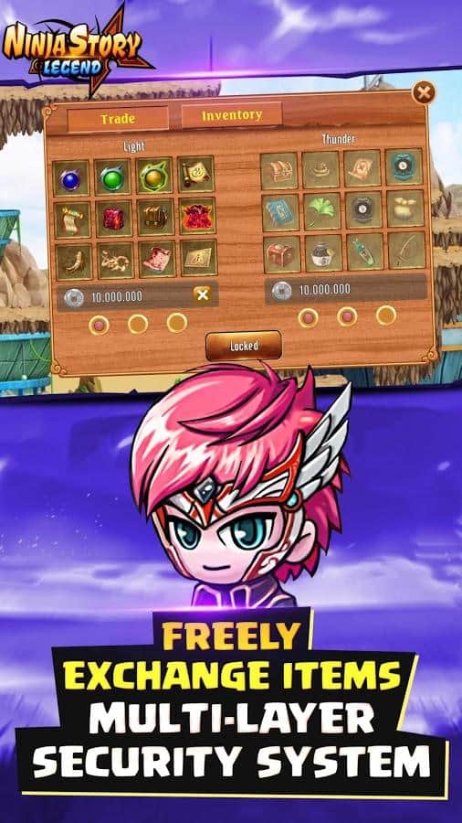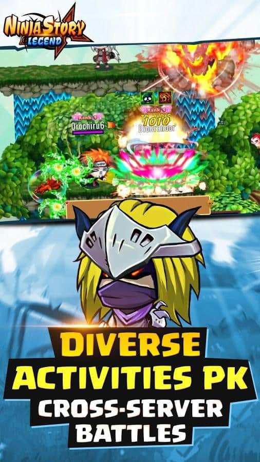 Ninja Hikaye Efsanesi - Android için bir rol yapma oyunu, burada sevdiğiniz karakterleri kontrol edeceksiniz. Karakterlerden birini kontrol altına alın ve eşsiz ve büyüleyici ninja dünyasını keşfedin. Eşsiz dünyayı keşfedin ve dünya genelindeki diğer oyuncularla birer birer, takım savaşlarında ve klan savaşlarında mücadele ederek meydan okuyun. Bu oyunda diğer oyuncularla ticaret yapabilir, çeşitli eşyaları teklif edebilir veya satın alabilirsiniz. Shinobi'nizi yönetin ve sürekli olarak farklı ekipmanlar ve silahlar kullanarak onu güncelleyin.