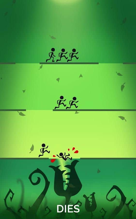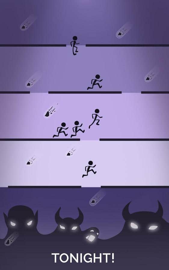Oyun stüdyosu CrazyLabs, mobil cihaz sahiplerine öncelikle yıkılmaz çocuk Tom serisi ile tanınmaktadır. Oyun, Dolandırıcı Tom adıyla anılmakta ve büyük bir popülariteye sahip olmuştur. Bu geliştiricinin bir dizi başka arcade oyunu olsa da, özellikle bu oyunlar oldukça bilinir. Ve işte, ekip bizleri Bu Gece Hiç Kimse Ölmez adıyla yeni bir arcade projesiyle sevindirmeye karar verdi veya Rusça çevirisiyle Bugün hiç kimse ölmez. Oyun süreci, birkaç parçaya bölünmüş bir seviyede gelişiyor; stickman'ler platformlarda koşarken, sizin ekranın belirli bir katında zamanında dokunarak kahramanın uçurumdan düşmesini önlemeniz gerekiyor. Oynanış, sizden hem beceri hem de önemli ölçüde sabır gerektirecektir.