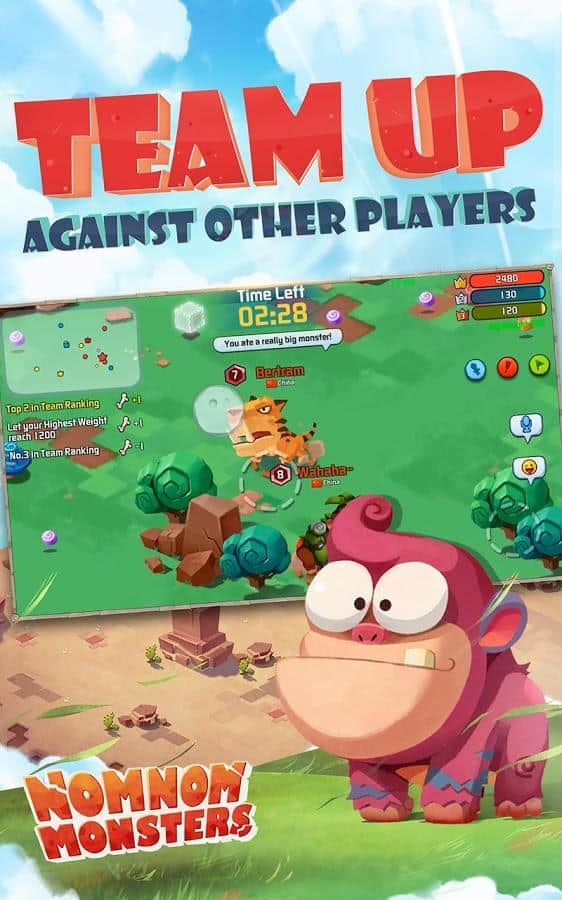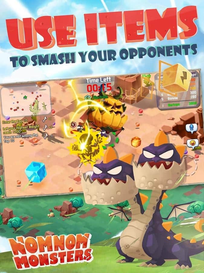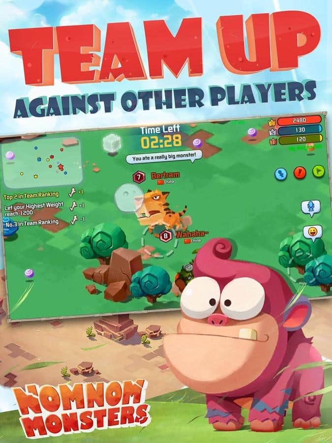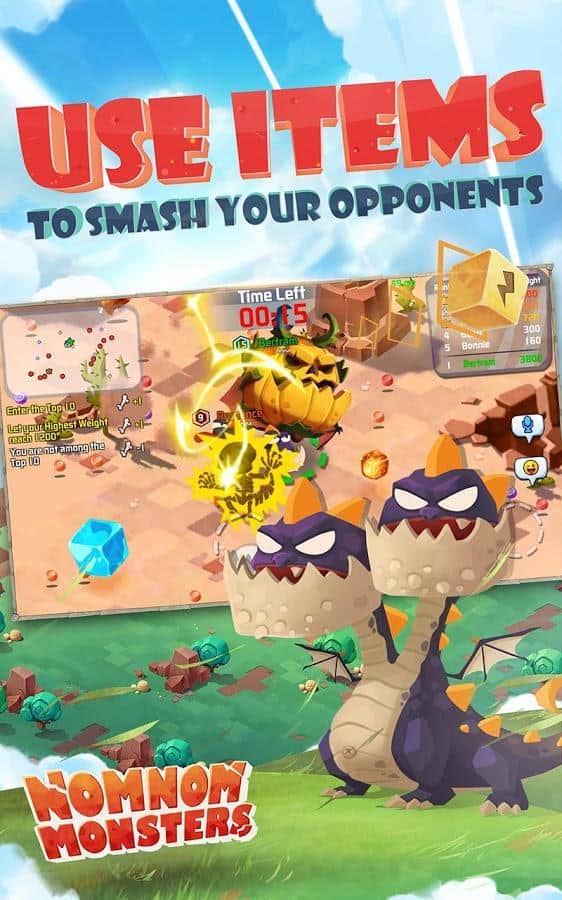 NomNom Canavarı – arenada hareket eden ve düşmanları yiyen sevimli bir canavarı yönetin. Bu oyundaki amacınız, mümkün olduğunca uzun süre hayatta kalmak ve tüm düşmanlarınızı yemektir. Düşmanlarınızla epik savaşlara katılın ve zayıf düşmanlara ilk saldırıyı yapın, güçlü canavarlardan ise kaçınmaya çalışın, aksi takdirde sizi yerler. Bu oyunu kazanmak için yeterli güçleri toplayın ve bunun için beslenmeniz gerekiyor. Yol boyunca birçok bonus toplayın ve güçlü düşmanlara karşı koymak için arkadaşlarınızla loncalar oluşturun. Arenada 5’e 5 formatında takım savaşları düzenleyin.