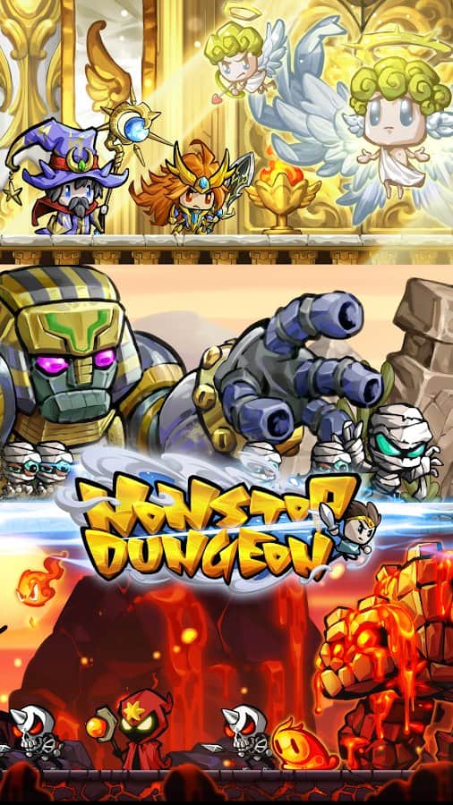 NonstopDungeon – sevimli ve eğlenceli bir Android oyunu, burada Ortaçağ dünyasına dalacaksınız. Bu oyunda, çeşitli şehirleri ve köyleri keşfetmek ve hazineleri aramak için işe aldığınız paralı asker grubunun işvereni rolünü üstleneceksiniz. Bu oyundaki paralı askerler, yakın dövüş, uzak dövüş veya büyü kullanma şeklinde üç tipe ayrılmaktadır. Göreviniz, düşmanlarınızı yenmek ve kahramanların seviyesini artırmak için kazanan bir savaş taktiği geliştirmektir. Oyun ilerledikçe, yenmesi o kadar da kolay olmayan daha güçlü düşmanlarla karşılaşacaksınız.