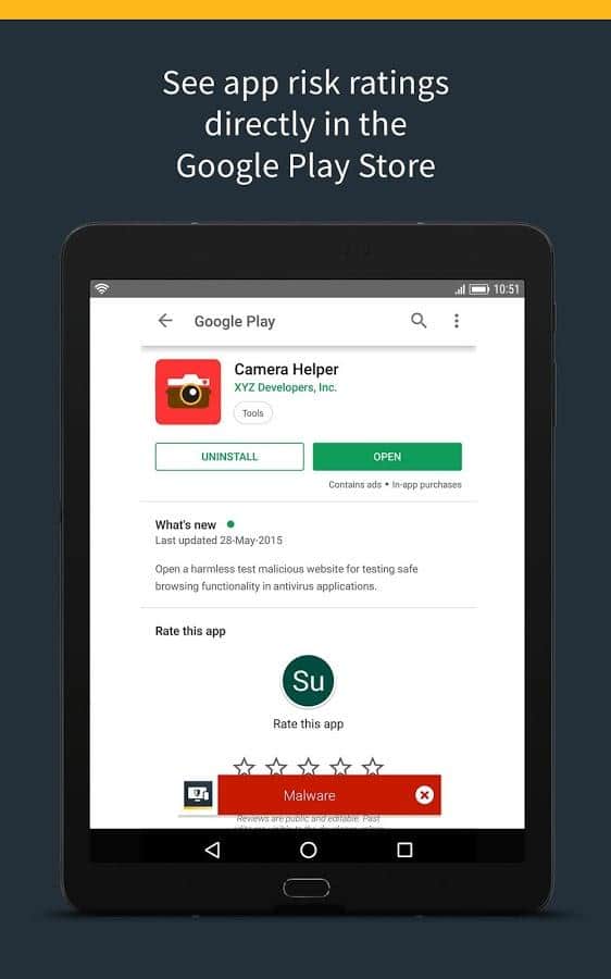 • Uygulama izleme koruması, kötü amaçlı yazılımlara karşı koruma özelliğimize eklendi, böylece uygulamanın cihaz konumunu, kişileri, fotoğrafları ve mesajları izniniz olmadan aktardığında sizi bilgilendirerek gizliliğinizi ve güvenliğinizi korumaya yardımcı olur.