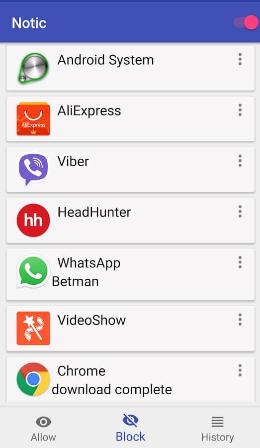 Eğer mobil cihazınızdaki sıradan bildirimleri görmezden gelmekten bıktıysanız ancak bunları gönderen yüklü uygulamalardan da kurtulmak istemiyorsanız, Notic - bildirim kontrolü işinize yarayacaktır. İçinde beyaz ve siyah listeler oluşturabilir, istediğiniz zaman bildirim gönderimini yasaklayabilir veya tekrar izin verebilirsiniz. Bunun yanı sıra, belirli ifadeler ve başlıklardaki isimler üzerinden mesajları engelleyebilir, mesaj geçmişini görüntüleyebilir ve anında temizleyebilirsiniz.