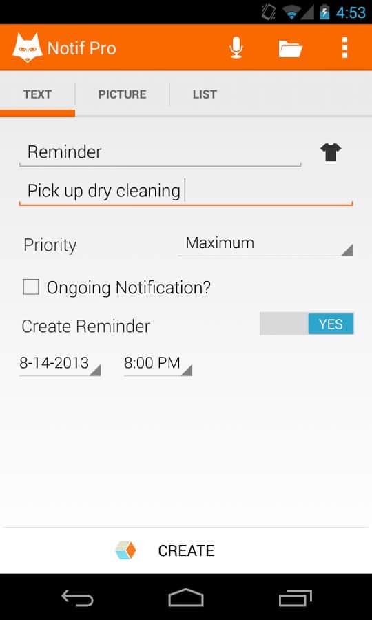 Notif Pro – Android akıllı telefon/tabletiniz için kullanıcı ayarları ile ilginç bir basit uygulama, 200 simge, şifre, liste, resim kullanarak hemen hemen her türlü sistem hatırlatıcısını oluşturmanıza yardımcı olacaktır. Not etmek gerekir ki, Notif Pro için Android 4.1 sürümü gerekmekte olmasına rağmen, uygulama Android 2.3 ve 3.x ile güçlü cihazlarda normal bir şekilde çalışmaktadır.