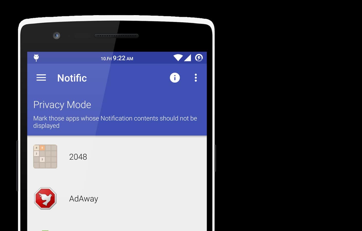 Notific – telefonunuzun kilit ekranında bildirimlerin otomatik olarak görüntülenmesi için bir uygulamadır. Bu uygulamanın özellikleri arasında şunlar bulunmaktadır: