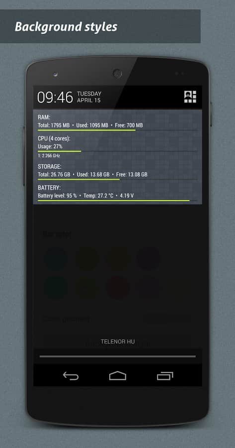 NotiSysinfo Pro - Bildirim sistemi, her akıllı telefonda standart bir uygulamadır, ancak bu sistem %100 çalışmıyorsa ne yapmalısınız? İşte bu noktada bu basit ama oldukça iyi uygulama devreye giriyor. Amacı, standart sistemlerde bulunmayan detayları size bildirmektir. Örneğin, akıllı telefonunuzun sıcaklığını bilmek ister misiniz? Sıcaklık belirlenen sınırı aşarsa veya belleğiniz aşırı doluysa, bu sistem sizi anında bilgilendirecektir, böylece cihazınızın çalışma süresini ve ömrünü koruyabilirsiniz. Cihazınızın işlevselliğini korumanın çok basit ve etkili bir yolu.