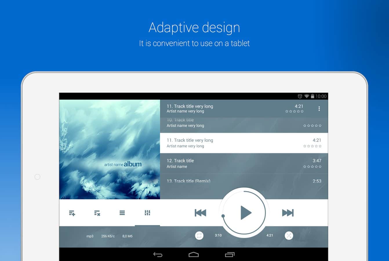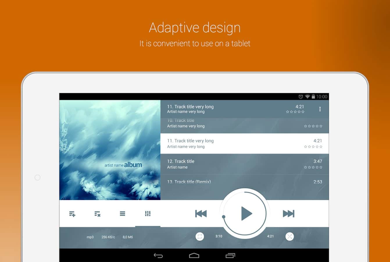 NRG Player müzik çalar - Birçok özelleştirilebilir özellik ile kullanışlı bir müzik çalar. Eşsiz on bantlı ekolayzır, bir sürü özelleştirilebilir seçenek ile. Ayrıca, tüm işlevselliğine ek olarak, bu çalar gerçekten harika bir özelleştirilebilir arayüzü bir araya getirmiştir. Özelleştirilebilir renkler veya tamamen farklı bir görünüm, her şeyi istediğiniz gibi değiştirebilirsiniz. Bazı skinler arayüzünüzü değiştirecek ve kullanışlılık katacak, örneğin eğer bir araç kullanıyorsanız, ya da sadece standart arayüzü beğenmiyorsanız.