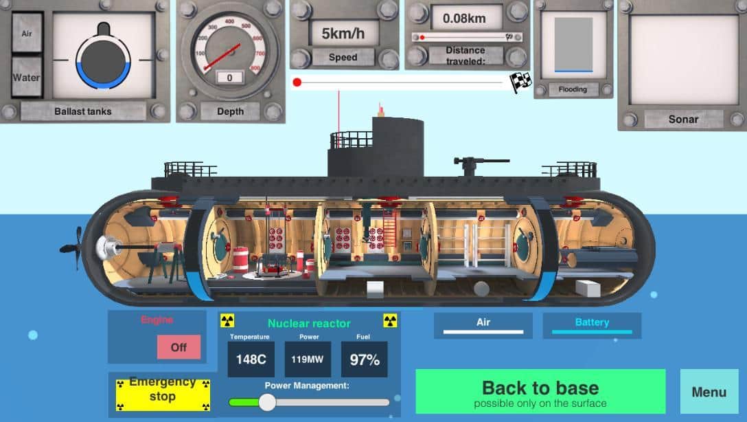 Nükleer Denizaltı inc – mükemmel bir android denizaltı simülatörü, nükleer reaktör ile. Bu oyunda, birçok zorluk ve kazayla karşılaşacak denizaltı kaptanı rolünde olacaksınız. Denizaltıyı yönetecek, derinliklere dalacak, kayalıkların etrafında dolaşacak ve ikincil Çernobil'e yol açabilecek nükleer reaktörde kazalara engel olacaksınız. Bu oyunu oynayın ve heyecan verici süreçten ve detaylı denizaltıdan maksimum keyif alın. Tekneye, inanılmaz derinliklere dalmasını sağlayacak yeni gövde parçaları uygulayın ve ayrıca yeni motorlar, stirling ve nükleer reaktörler kurun. Oyunun sunduğu tüm görevleri ve misyonları yerine getirin.