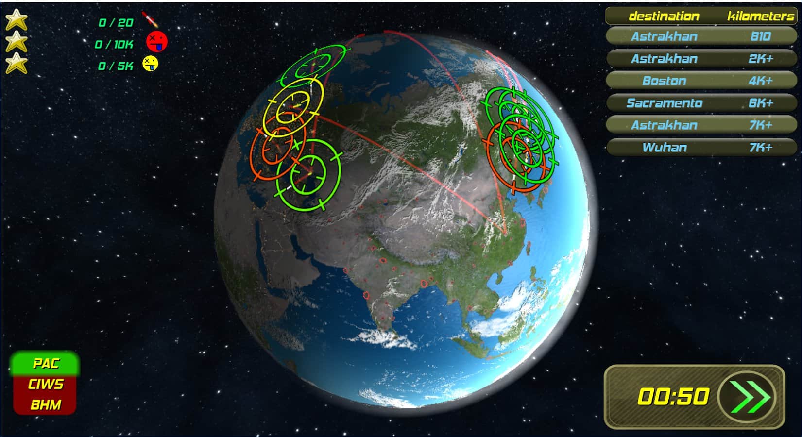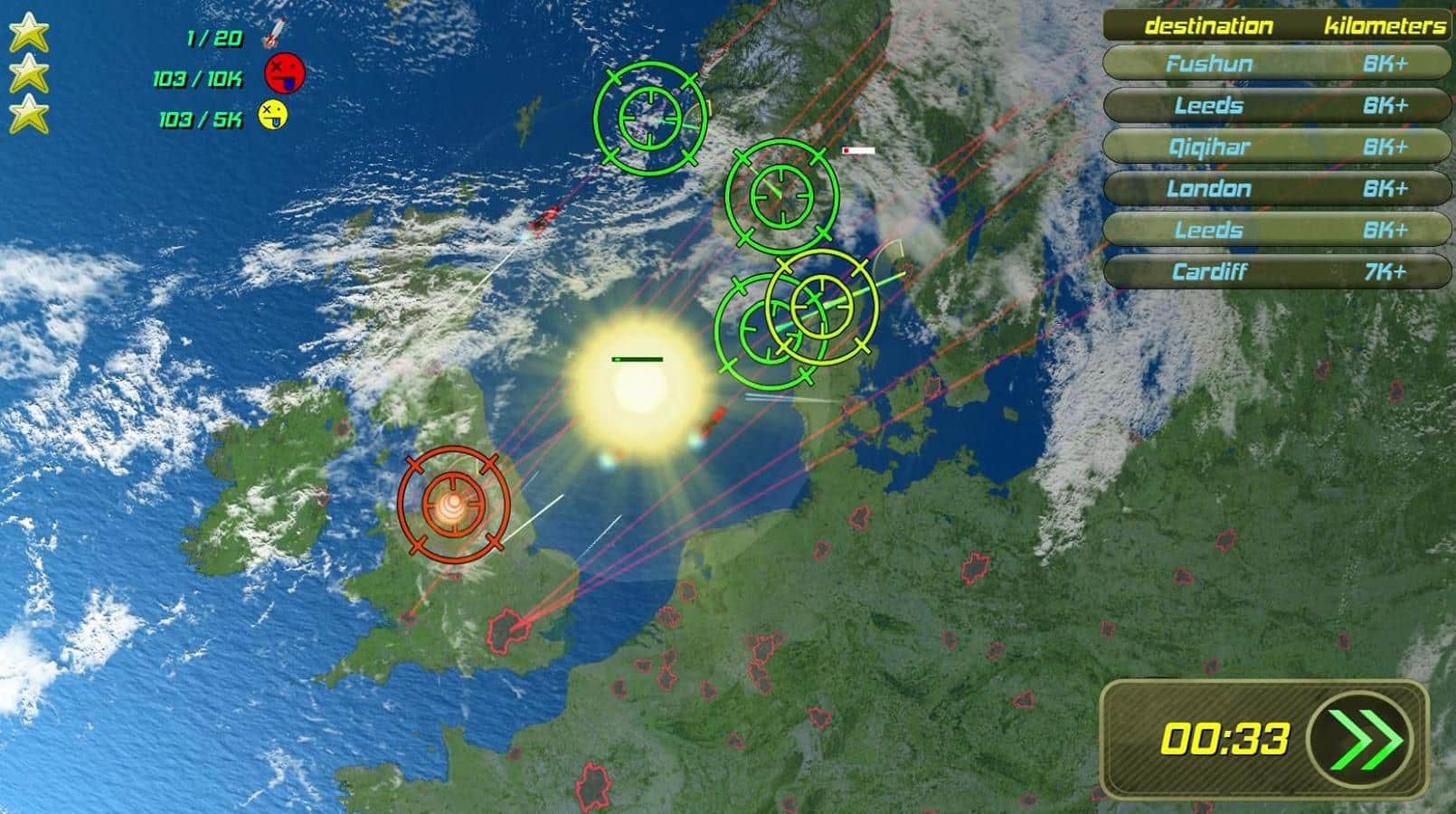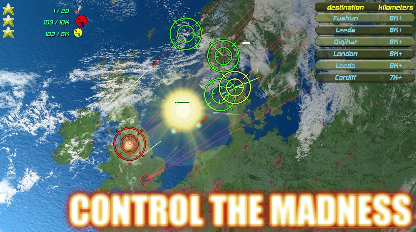 NUKEOUT – Android için heyecan verici bir simülatör, burada nükleer savaşı önleyeceksiniz. Bu oyunda, milyonlarca insanın yaşadığı dev bir harita ile karşılaşacaksınız ve göreviniz size doğru fırlatılan nükleer füzeleri yakalamak ve onların hedefe ulaşmasını engellemektir. Nükleer Armageddon'u durdurun ve rakiplerinize topraklarınıza en küçük bir saldırı bile yapma şansı vermeyin. Dünyanın dört bir yanındaki oyuncularla meydan okuyun ve olağanüstü sonuçlar elde etmeye çalışarak çeşitli turnuvalara katılın. Her ne olursa olsun zafer kazanın ve son derece dikkatli ve temkinli olun.