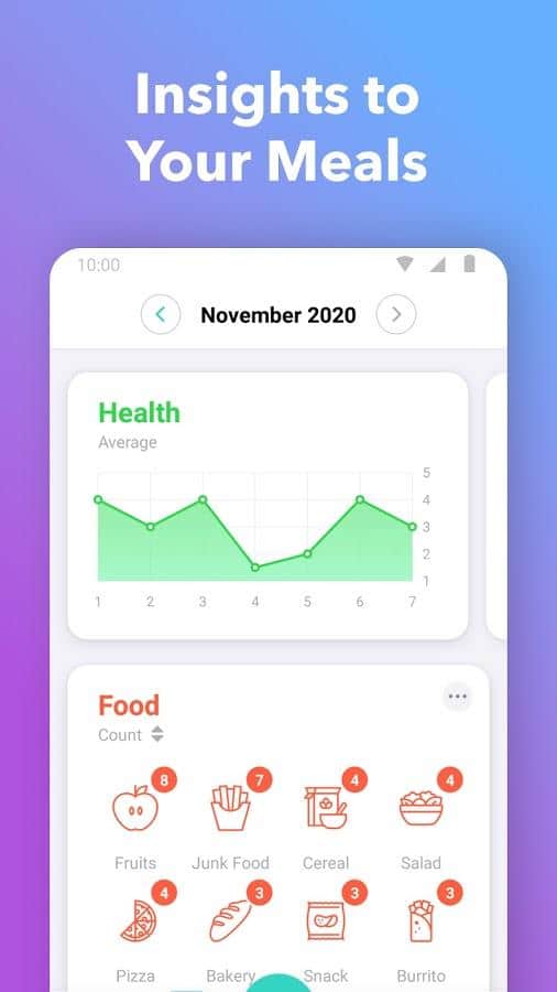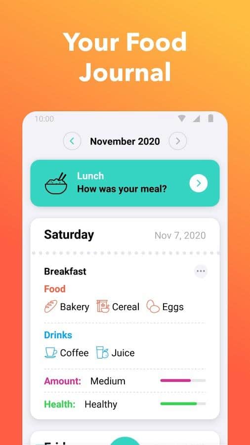 Diyet yapıyorsanız veya başka bir nedenle yediğiniz ve içtiğiniz şeylerin günlüğünü tutmaya karar verdiyseniz, bu uygulama amacınıza mükemmel bir şekilde uygun olacaktır. Her şey sezgisel olarak anlaşılır, yemek fotoğraflarınızı yükleme, küçük notlar alma, yemek türünü seçme, faydalılık ve zararlılık seviyesini belirleme ve daha fazlasını yapma imkânı vardır. Birkaç gün içinde aşırı yemenizin dinamiklerini grafiklerde ve gözlemlerde görebilirsiniz.