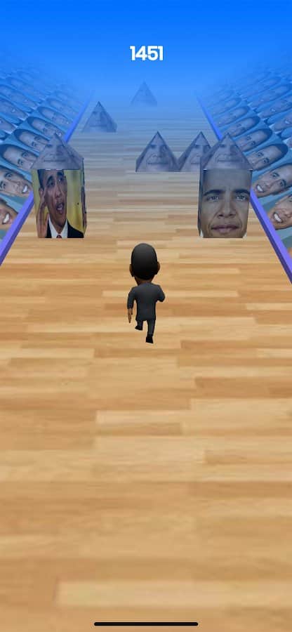 Obama sizi kovalıyor! Onun uzun bir engelli parkuru geçmesine yardımcı olun, bu engellerin hepsinde ana karakterin yüzü var. Eşsiz bir yolda epik müziğin tadını çıkarırken, mümkün olduğunca çok deneyim kazanın ki daha sonra kat edilen mesafe rekorları koyabilesiniz. Sadece Barack Obama'nın bulunduğu bir dünya yaratın, aksi takdirde bu oyunu geçmenin ne anlamı var? Kahramanınızla boş zamanlarınızda oynayın, engellerden kaçının ve sadece ileriye doğru hareket edin.